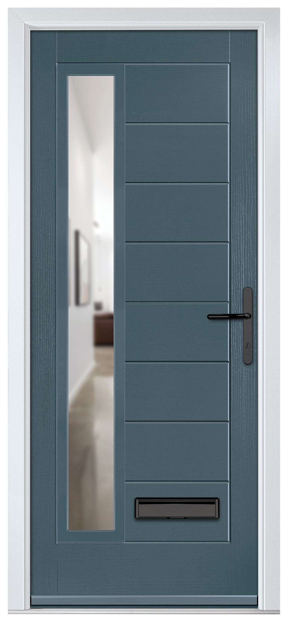 Crystal Monza Slate Grey Left Hand GRP Composite Door with Clear Glass - 920 x 2090mm - Crystal composite doors feature a GRP skin and a high density polyurethane foam core to offer stability from the elements and water ingress. This door includes a high security locking system that works with Kubu - an intelligent alerting system for windows and doors; installed and ready to go. Kubu door sensors work hand-in-hand with the most secure multi-point door locks available and the cylinder of your choice, to provide a level of technology that enhances your home security. Designed to be completely concealed, Kubu provides discreet, yet helpful smart security benefits – without having to compromise the aesthetics of your home. The overall height of the door includes the cill.