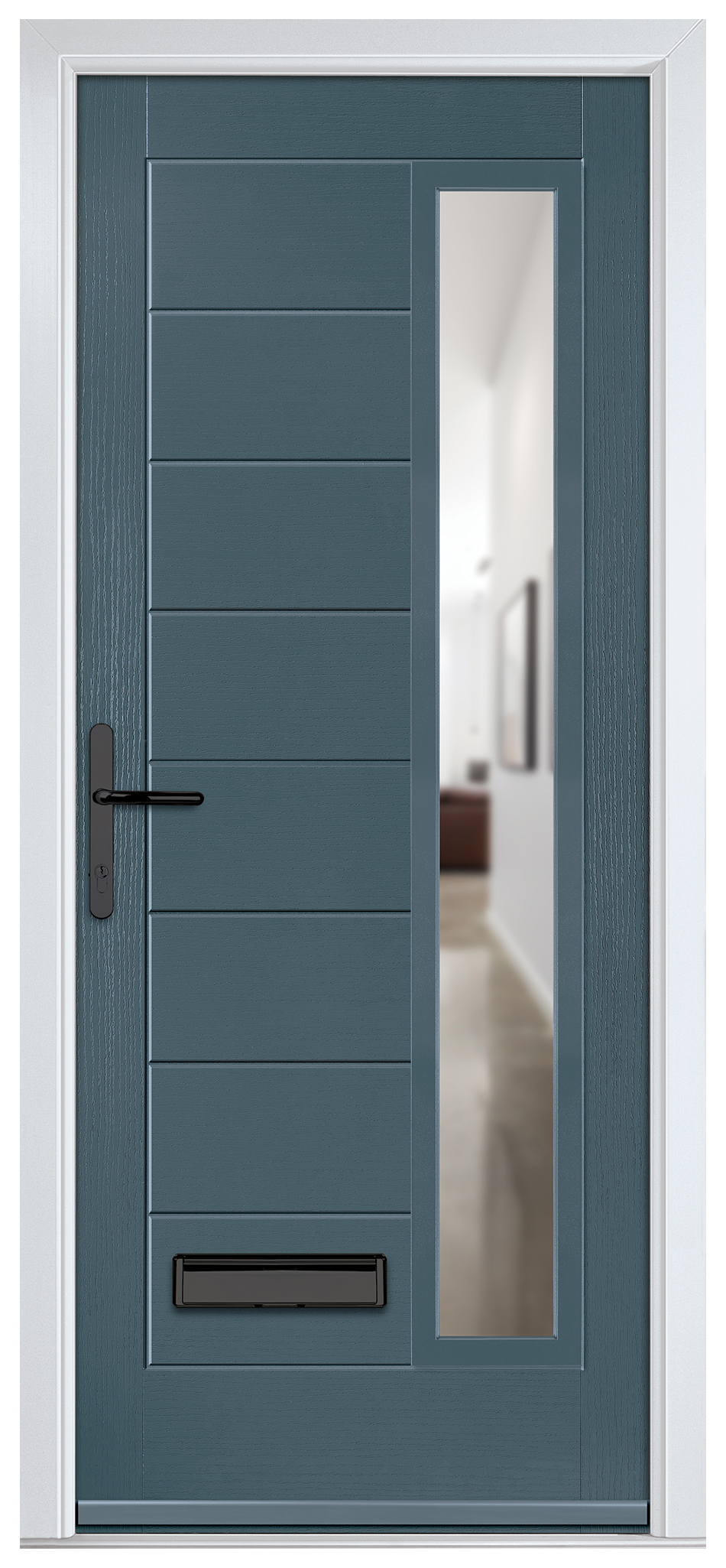 Crystal Monza Slate Grey Right Hand GRP Composite Door with Clear Glass - 890 x 2090mm