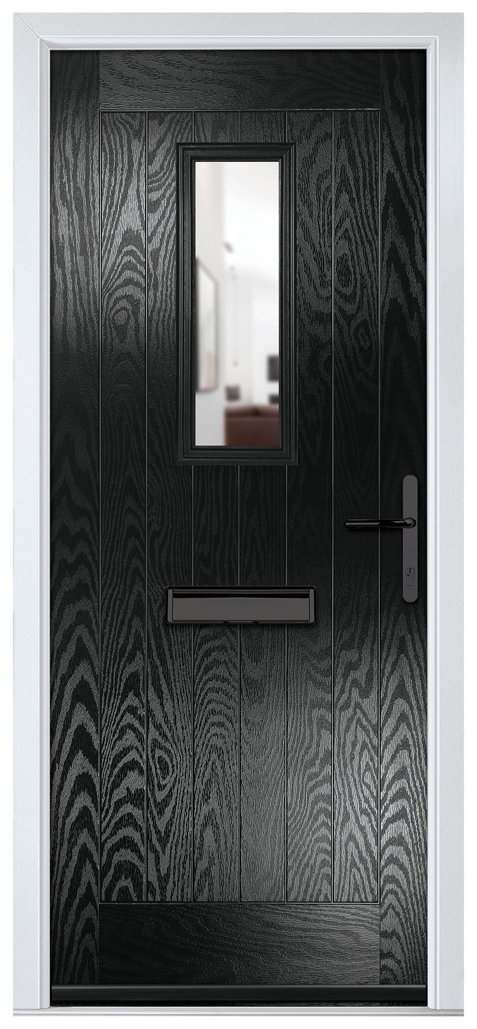 Crystal Sunningdale Black Left Hand GRP Composite Door with Clear Glass - 890 x 2090mm