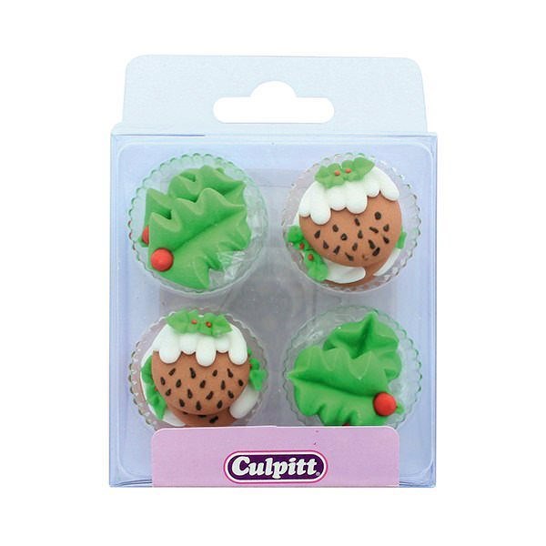 Culpitt Holly and Christmas Puddings Sugar Cake Decorations - Pack of 12