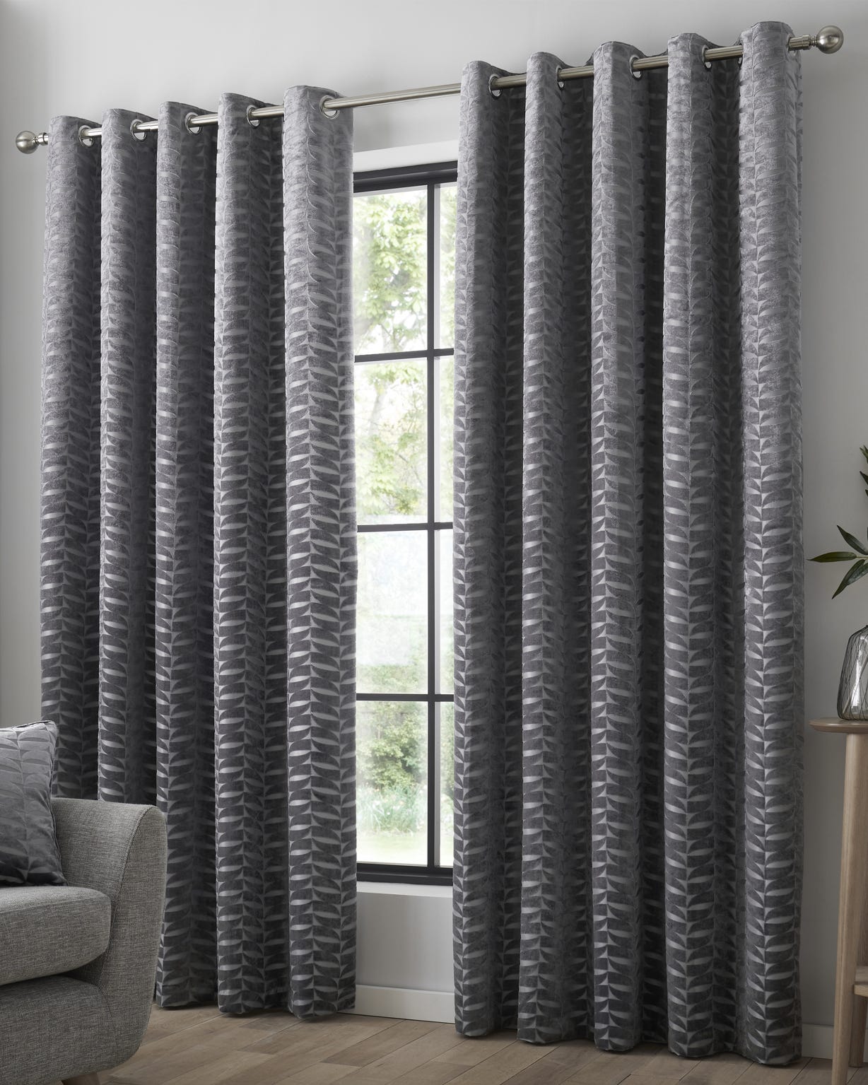 Curtina Kendal Eyelet Curtains, Charcoal Gray, 117X137