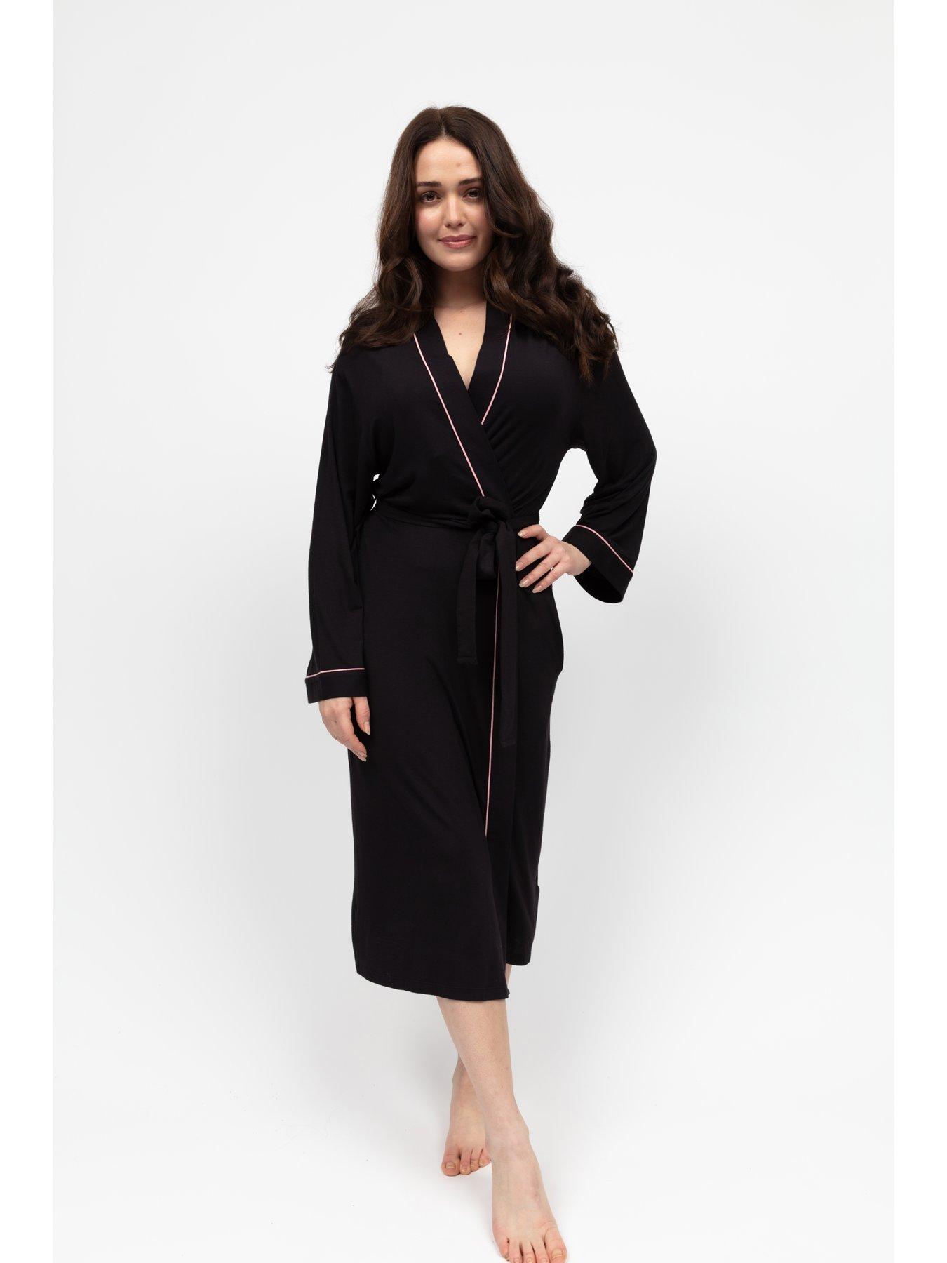 Cyberjammies Jersey Long Sleeve Long Dressing Gown - Bonnie Black, Black, Size 8, Women - Black - 8