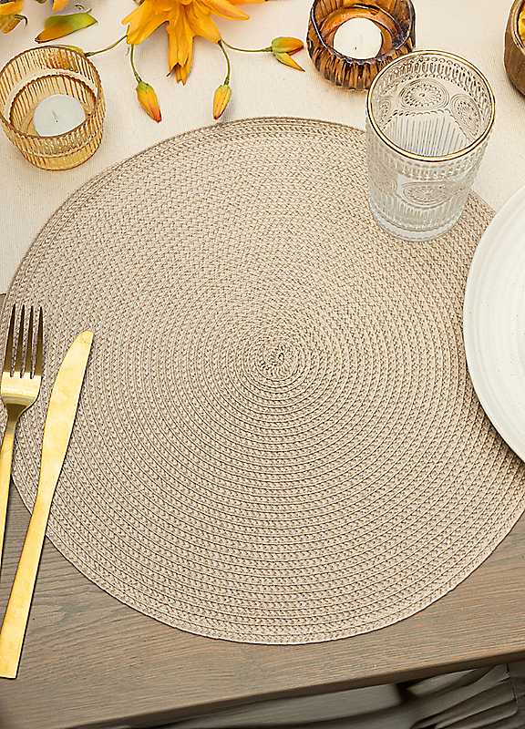 This 6-pack of PVC-free round weave placemats are food-safe, easy to wipe clean, and available in a range of attractive colours - perfect for elevating your dining experience with both style and practicality.Pack of 6PVC FreeWipe CleanMaterial: 100% PPSize approx: 38cm round
