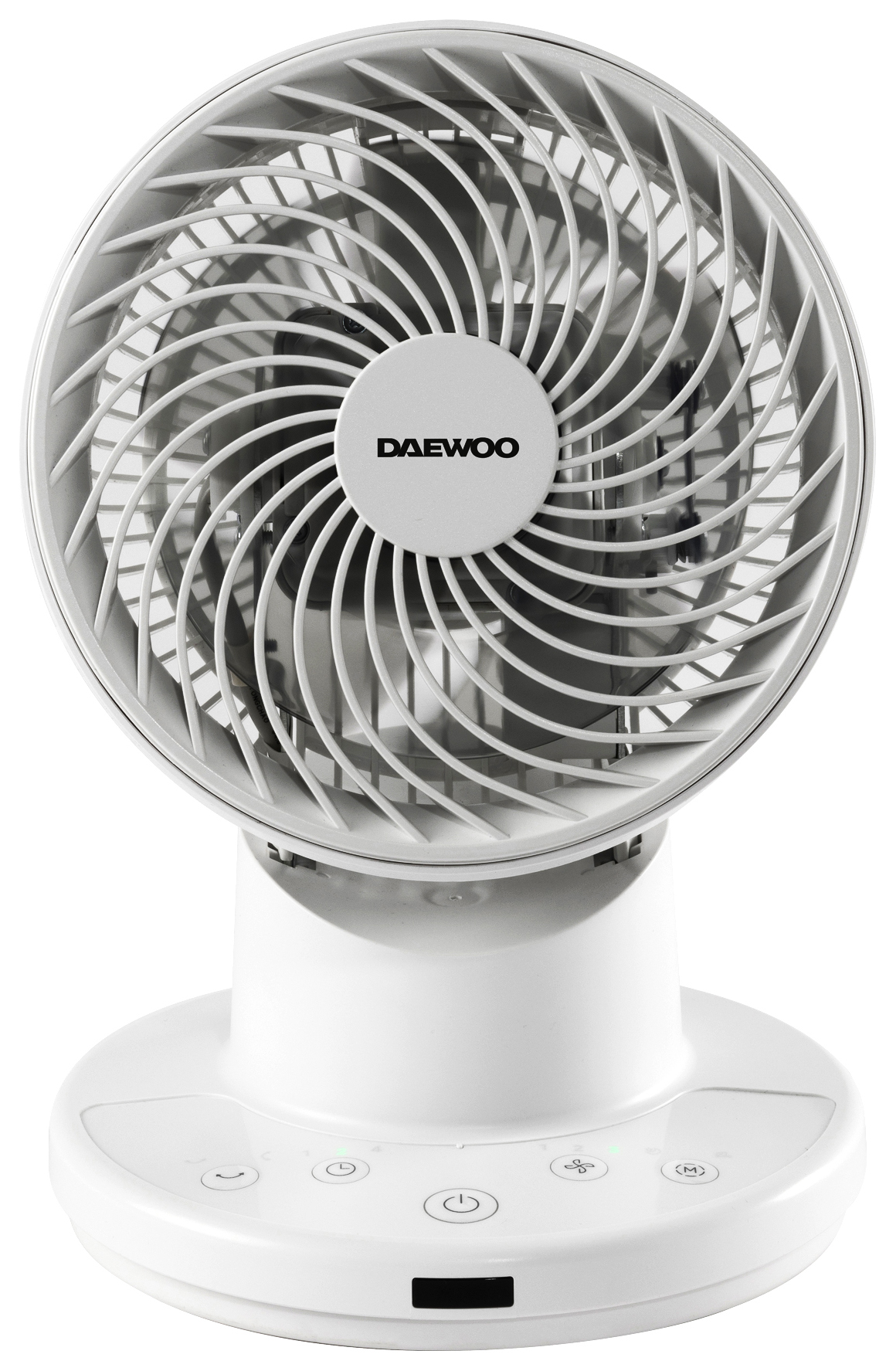 Daewoo White Air Circulator Desk Fan - 8in - The Daewoo 8in Desk Fan delivers strong airflow in a compact design, perfect for desks or bedside tables. It offers both horizontal and vertical oscillation for better air circulation. Choose from 3 speeds, natural wind, and sleep modes, plus a 7-hour timer, where the natural mode mimics outdoor breezes, and sleep mode slows down gradually to help you relax. Adjust settings easily with the remote or manual controls on the fan. It is powerful yet quiet, with a small footprint and sleek white design that fits any room.