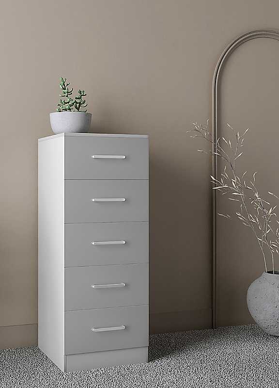 Dakota 5 Drawer Narrow Chest - Light Grey