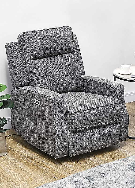 Relax in ultimate comfort and style with this electric reclining chair, designed to elevate your lounging experience. The backrest tilts back up to 150°, allowing you to stop at any angle that suits you, while the retractable footrest offers extra support for your legs and feet. Whether you are watching TV, reading, or simply unwinding, this chair provides all the comfort you need. Its space-saving wall hugger design requires only 7 cm of space from the wall to fully recline, making it perfect for smaller rooms or apartments where space is limited. The chair is also equipped with a USB charging port located conveniently on the armrest, so you can charge your phone or other devices without having to get up. Built with a metal frame, this recliner offers a strong, stable base, while the high-density foam padding ensures comfort that lasts for hours. The linen-look upholstery is soft and breathable, providing a smooth feel on your skin. Its also easy to maintain, with spot cleaning recommended for gentle stains.Maximum Load Capacity: 130 kgAssembly: Easy to assemble with no tools requiredMade from Flame-Retardant MaterialsLinen (Polyester), Metal, FoamUpright dimensions approx. 104Hx 84W x 92D cmReclined dimensions approx. 87Hx 84W x 154D cmSeat dimensions approx. 49Hx 58W x 53D cmArm rest height approx. 62 cmPlease remember to measure your available space before ordering. If using on an un-carpeted floor we recommend rubber or felt protection pads be used under the legs to avoid damage to your floors. | power recliner chair, electric recliner chair, comfortable recliner chair, gray recliner chair