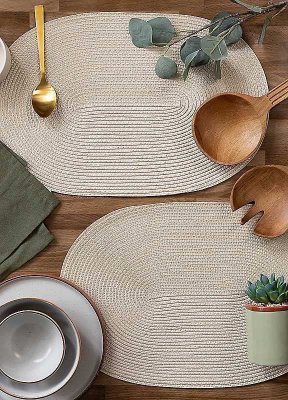 This pack of 6, PVC-free oval weave placemats are food-safe, easy to wipe clean, perfect for elevating your dining experience with both style and practicality.Pack of 6PVC freeWipe clean only100% Polypropylene (PP)Size approx. 29 x 44 cm