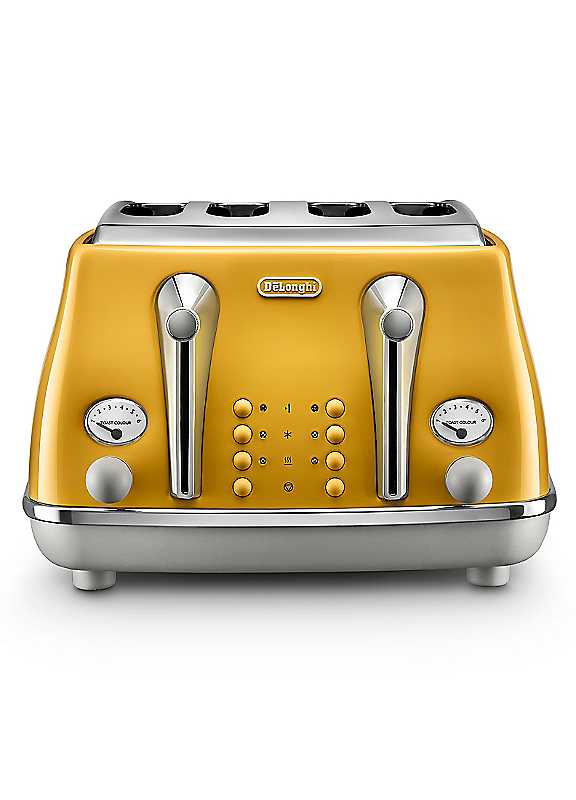 Travel the world from your kitchen with De'Longhi's Icona Capitals toaster range. Stylish Italian form is enhanced by a glossy, bright yellow finish that captures the iconic spirit of New York, adding a touch of urban style to your home.Enjoy ultimate ease of use and 6 browning levels for toast tailored to your taste with this modern breakfast essential.- Toast your bread just the way you like it with the 6-position progressive browning control, for the perfect unburnt slice- Enjoy the versatility of toasting various types of bread with the 'Bagel', 'Defrost' and 'Reheat' settings- Dual independent control panels, allowing you to select different toasting settings to suit everyone's taste- Easily remove smaller slices of toast by simply lifting the lever, meaning no more burnt fingers- Add an exclusive touch of class to your kitchen with the Icona Capitals design in rich New York Yellow- Power - 1800WDimensions approx. 21H x 30W x 31D cm