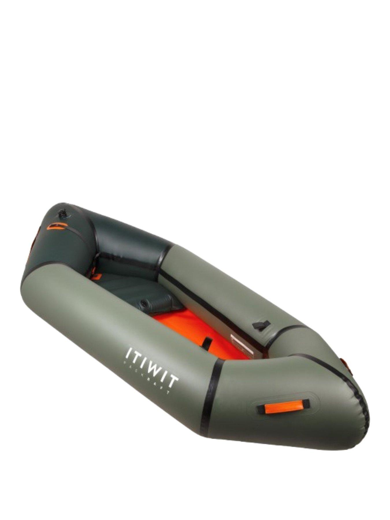 Decathlon Packraft 100 Inflatable River Kayak TPU 1P The packraft's compact design transitions seamlessly from land to water: The 95 cm width offers stability during calm river descents or lake crossings. Quick inflation in 10 pumps of the bag. Raised seat for comfort when at rest and when paddling. Its TPU constructions means it can be dried quickly and easily with a towel Spare parts available online or Ultralight packraft weighing just 2 kg in total (packraft, tube, pump bag, seat) For 1 person and their kit, weighing up to 110 kg (242.5 lbs). Sail safely, confidential, reinforced floor: 420D TPU double-laminated polyamide Low centre of gravity, external width: 95 cm, good stability during navigation Inflate with 10 pump bag compressions. Risk of over-inflation with manual pump.