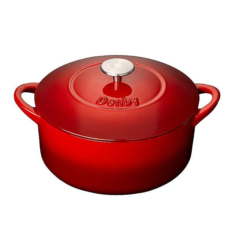 Denby cast iron is versatile and strong, crafted from the finest cast molten iron and enamelled both inside and out. Each piece is dishwasher safe, and can be used in the oven and on all hob types including induction and comes with a Lifetime Guarantee. Denby Casseroles have integrated basting rings to keep food succulent and a tight fitting lid to seal in moisture for even cooking. The 24cm red round casserole serves approximately 4-5 people and with minimal effort on the hob or in the oven one pot meals come together quickly any day of the week. Other items in the Denby Cast Iron range include 26cm, 28cm, 30cm casseroles, a griddle pan and a trivet.Suitable for all oven & hob types, including inductionOven safe up to 250c/Gas Mark 9/ 482FLifetime GuaranteeCapacity: 4050 mlDishwasher safeCast IronSize approx. 24L x 24W x16.5D cm