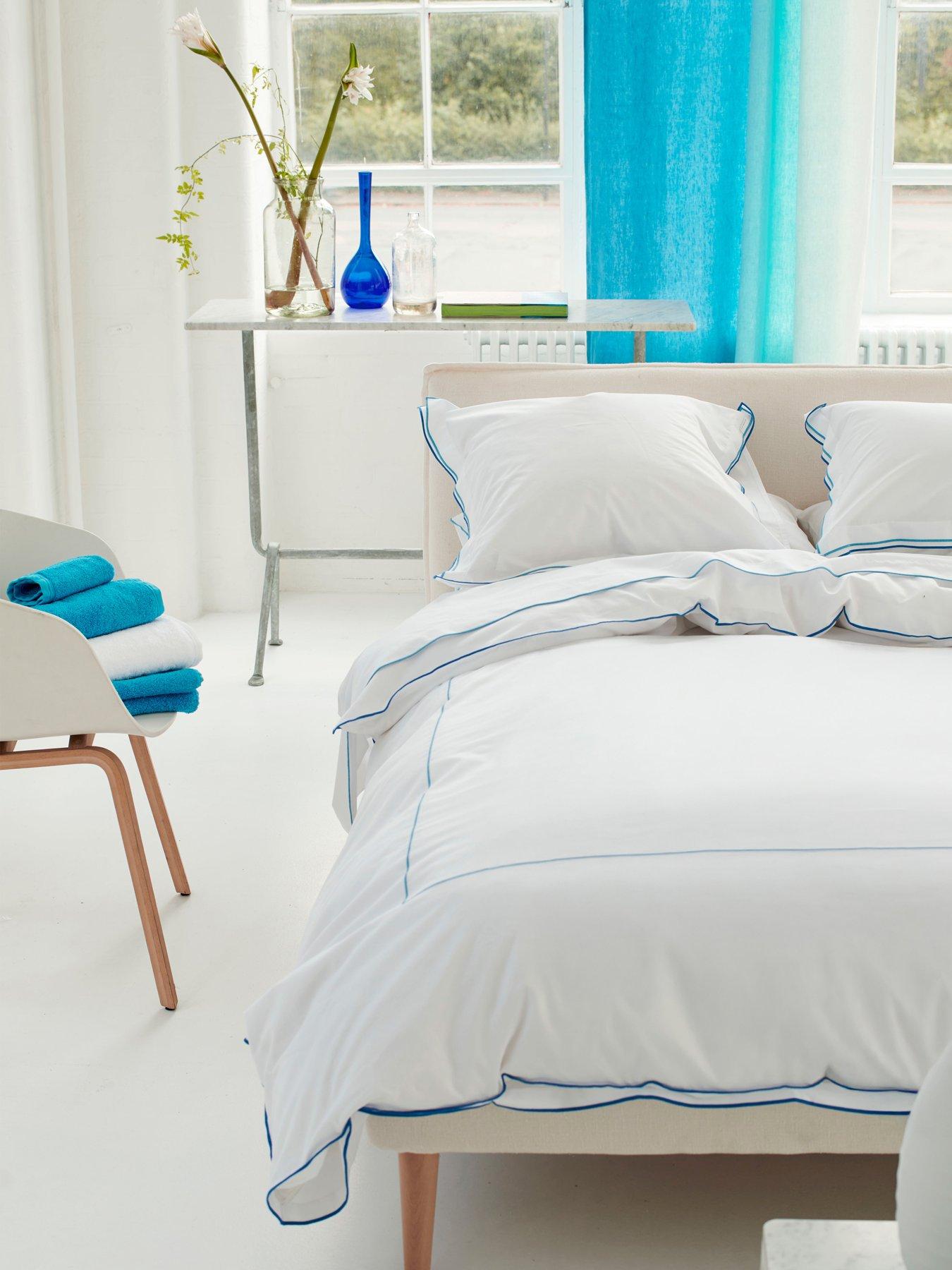 Designers Guild Astor 100% Cotton Quilt Set Cobalt Blue Our beautiful 400 thread count cotton percale bed linen, a quality you would expect to find in a luxurious hotel. Crisp, plain white with a sophisticated, embroidered detailing in two complimentary shades feature on the double-edged Oxford Pillowcase. The duvet cover features a co-ordinating, embroidered frame design and embroidered edging for a stylish look. This bedding brings five-star style to your bedroom. Available in sizes: Double set, king set and Super king set. Set includes duvet cover and 2 pillowcases (Includes 1 pillowcase with single set). Design Type: Plain Height: 220 CM Material Content: 100% Cotton percale, 400 thread count Washing Instructions: Machine Washable Width: 230 CM Thread Count: 400