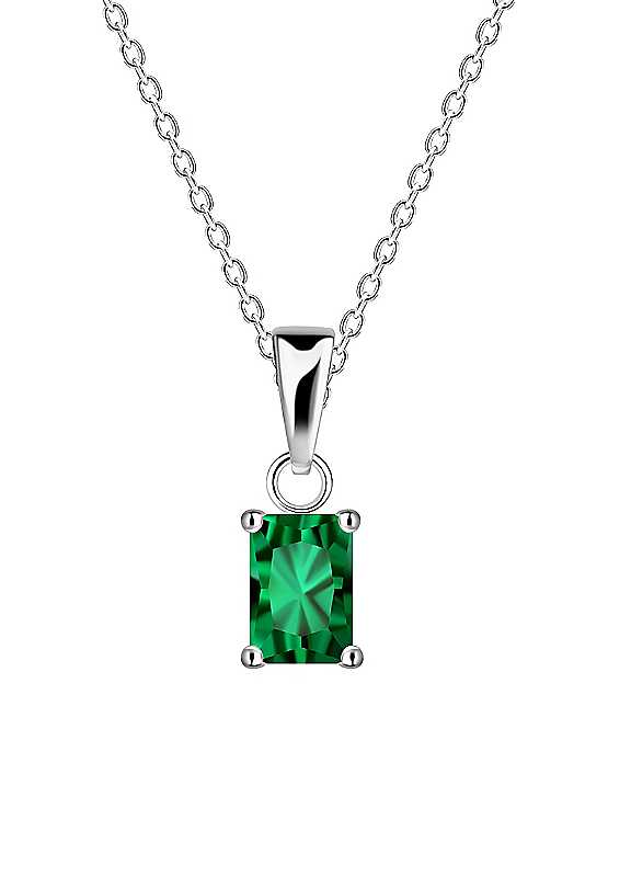 Fresh and contemporary, this Green Baguette Cut Pendant brings a crisp pop of colour to your look. Its minimalist design and polished finish make it an easy everyday piece and a lovely gift.Sterling silverGreen baguette-cut cubic zirconiaClean modern shapeLight and versatile18 inch chainGreat for giftingPresented in a hinged gift boxMaterial: 925 Sterling Silver and Cubic Zirconia | emerald cut necklace, cubic zirconia necklace, green pendant necklace, green stone necklace, silver pendant necklace, sterling silver necklace