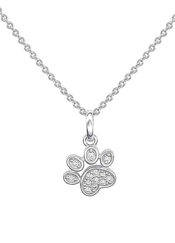 Dew Sterling Silver & Cubic Zirconia Paw Print 18 Inch Necklace - Size ONE SIZE