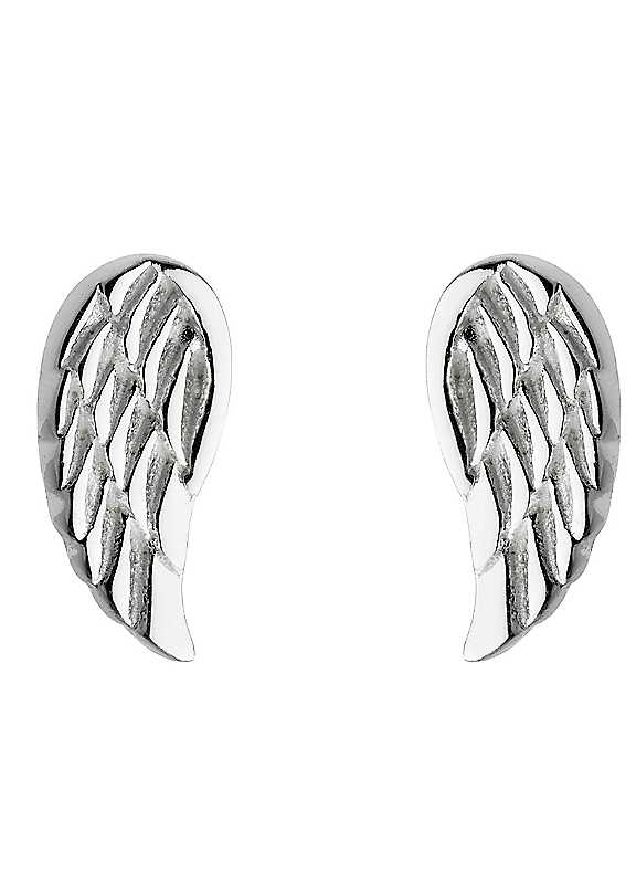 Fly away with these delightful stud earrings. Crafted from highly polished Sterling Silver, with intricate detailing on the wings, these delicate earrings are the perfect gift for someone special. Every piece is presented in a beautiful gift box, keeping your jewellery perfect and ready to wear. Brand: Dew Gift boxed Material: 925 Sterling Silver Fastening: Post & butterfly Size approx. 0. 8 x 0. 4 cm (¼ x ¼ in) For pierced ears only | small stud earrings, silver stud earrings, sterling silver earrings, angel wing earrings