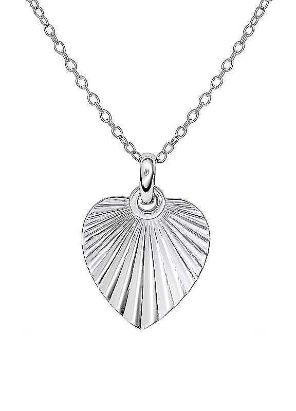 Bright and symbolic, the Heart Sunburst Pendant feature a radiant sunburst design etched into the classic heart shape. Uplifting and meaningful, it makes a beautiful everyday piece and a thoughtful gift for someone special.Sterling silverHeart sunburst designLight-catching polished finishSentimental everyday style18 inch chainIdeal for giftingPresented in a hinged gift boxMaterial: 925 Sterling Silver | heart shaped pendant, heart pendant necklace, silver heart pendant necklace, silver pendant necklace, sterling silver necklace, heart chain necklace, sterling silver heart necklace, heart shaped necklace