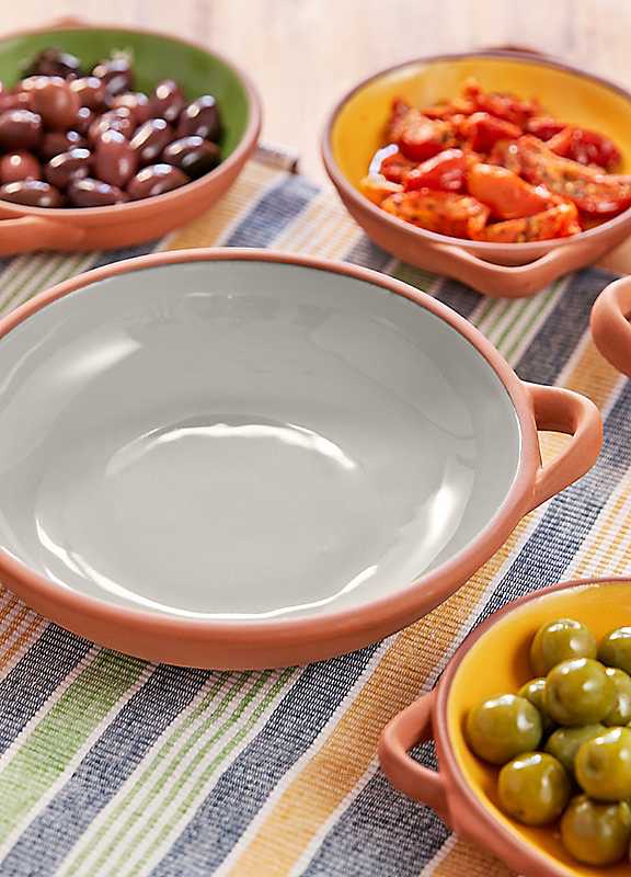 Large terracotta dish perfect for enjoying tapas, serving vegetables, stews or for sharing platters.This beautiful stone glazed terracotta tapas dish is one of the many products in our sintra collection, inspired by the richness of the architecture and surrounding landscape of sintra, in Portugal. Perfect for enjoying tapas, snacks or for sharing platters. Made from 100% terracotta with a hand finished glaze. Due to the nature of the glazing each piece is beautifully individual with possible variances in shade from piece to piece.As practical as it is attractive, this tapas dish is dishwasher, microwave and oven safe. One of five colours in this collection. Enjoy mediterranean style outdoor dining with our multi-coloured glazed terracotta and linen pieces. Explore the full sintra collection and bring colour and vibrance to any table!Hand finished colour glazeIdeal for serving tapas - tortilla chips, patatas bravasPerfect for outdoor dining & entertainingMicrowave, oven & dishwasher safeCeramic