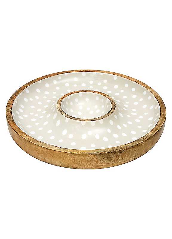 Dexam Sintra Mango Wood Spotted Chip & Dip Bowl - Stone