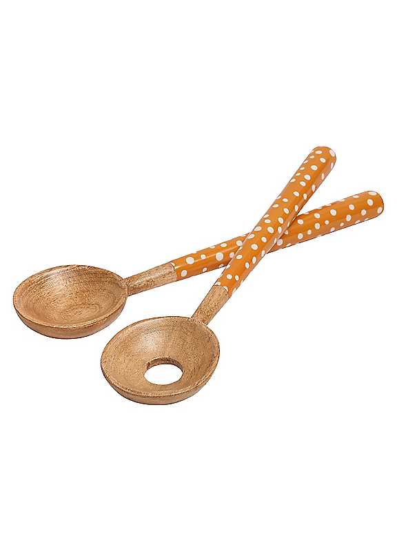 Dexam Sintra Mango Wood Spotted Salad Servers - Ochre