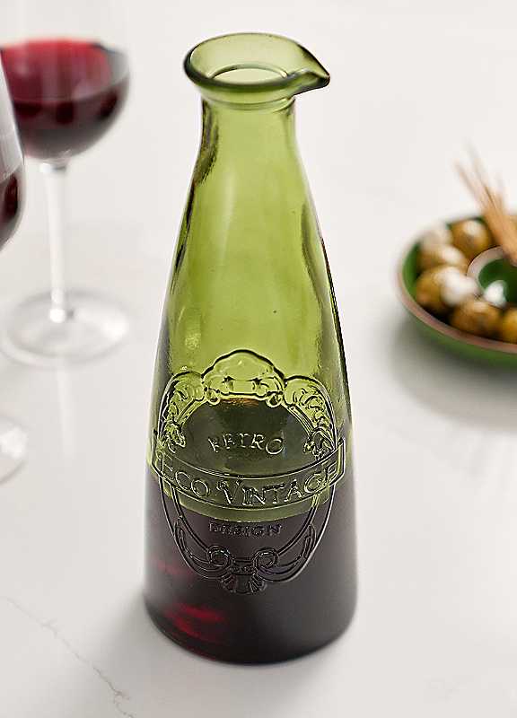 A stunning green handleless carafe made from 100% recycled glass. Made from 100% recycled glass. Beautiful and unusual colour. 1 litre capacity holds a full bottle of winemade in Spain. A stunning handleless carafe. The versatile design also lends itself as a jug for table. Perfect for wine or water. Inspired by the beautiful town of Sintra in Portugal, this collection reflects the magic and mystery of the place. Explore our full Sintra collection and bring colour and vibrance to any table!