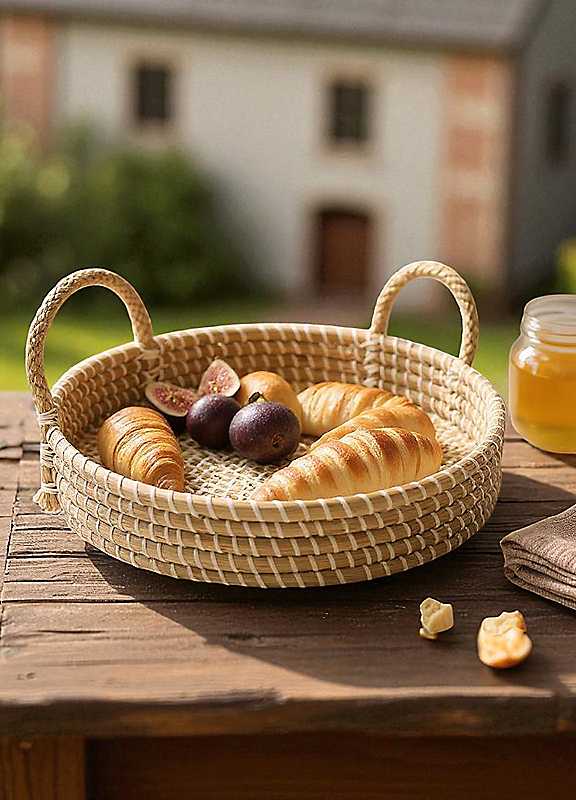 This handwoven seagrass tray is a beautiful and sustainable addition to any home. Crafted from eco-friendly seagrass material, each tray is meticulously handwoven, showcasing the artistry of natural fibres. The tray features durable white plastic binding for added strength and a modern, clean aesthetic. With sturdy handles for easy carrying, it's perfect for serving food, drinks, or organising essentials. A versatile and practical piece, it's designed to be wiped clean only to maintain its beauty and durability.Sustainable Fibres