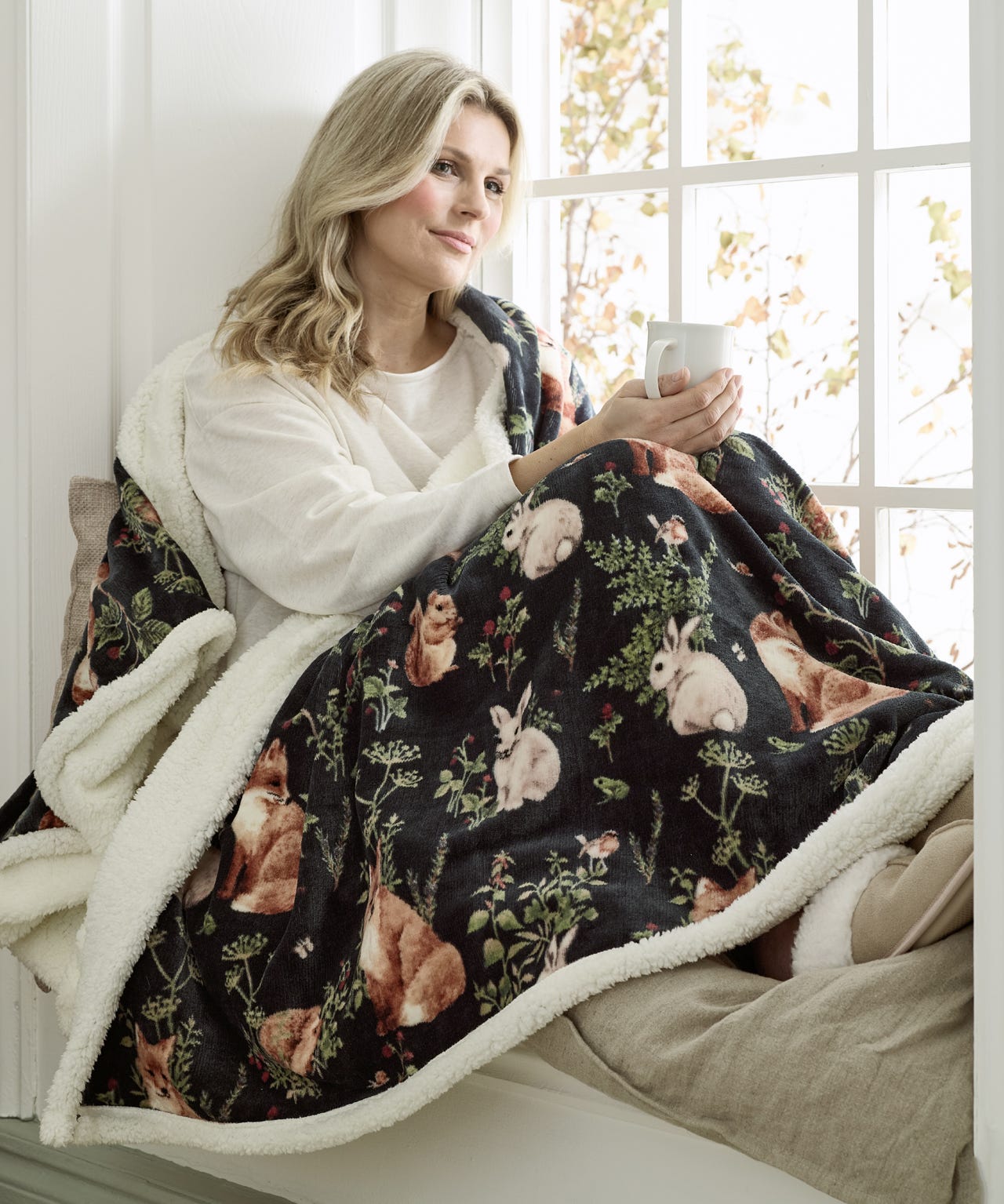 Deyongs Heated Woodland Wildlife Throw, Green Plain, 140 X 180 CM