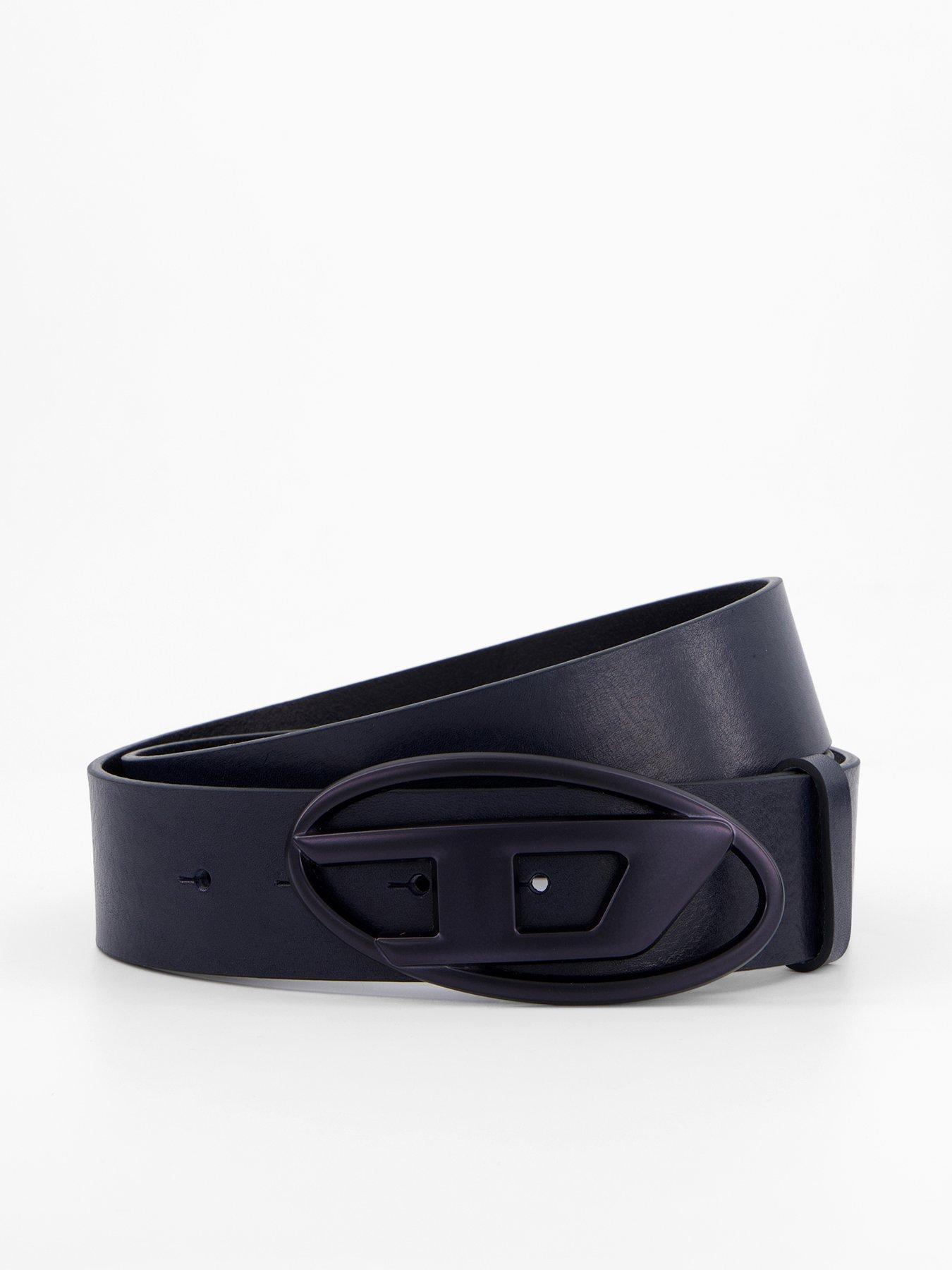 Diesel D Oval Leather Belt Size & Fit Available in sizes 85 - 110 Details D Oval Leather Belt by Diesel Black Leather with tonal stitching Reversible Logo buckle closure Adjustable length Material & Care Material Content: 100% COW LEATHER