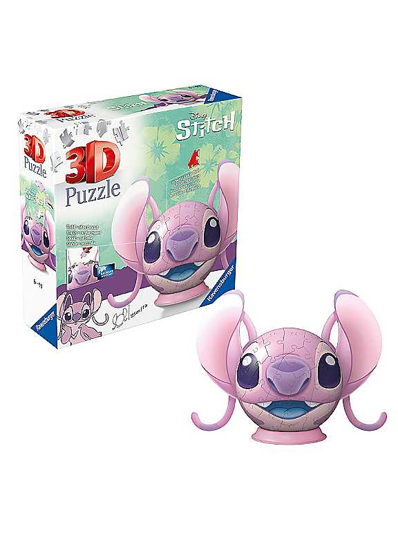 An adorable 72 piece 3D high quality jigsaw puzzle of the iconic Angel from Disney Stitch, complete with ears! All of the pieces fit together perfectly to form a strong and sturdy spherical puzzle. Comes with a plastic stand so you can place your completed 3D puzzle on display in your room for everyone to admire!Ravensburger's 72 piece 3D puzzle ball jigsaws are crafted with premium quality and when completed are 13cm in diameter. Great 3D puzzles for Children 6 years old and up. Fully complies with all necessary UK and EU testing standards. This puzzle uses unique plastic pieces, which slot together to build a sturdy and strong model. No glue required! Either assemble by eye or using the numbers on the reverse side.Best selling 3D puzzle brand worldwide - Our 3D jigsaw puzzles make ideal gifts for boys and great gifts for girls.Positively Puzzling - From fun family times together to long term health benefits and day-to-day mindful moments, there are so many positives about the humble Jigsaw! They make a great birthday gift or smashing Christmas gift.Age suitability: 6 yearsNot suitable for children under 3 years old.
