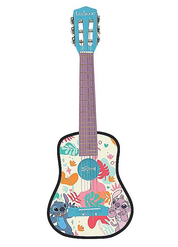Learn to play guitar with this fantastic Stitch acoustic guitar!6 nylon strings.Wood.Pick and straps provided.Tune the guitar yourself (tuner not provided).A guide is included to help you learn to play the guitar!Age Suitability: 5+Length approx. 78 cmWARNING! This product is not a toy.