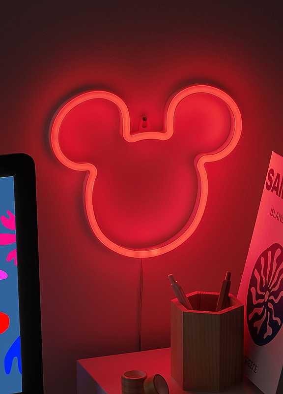 Light up your space with this stylish Mickey Mouse LED Neon Light. Shaped like the Disney character, it will add a vibrant pop of red light to your wall. The 21.8cm (8.6in) tall wall-mountable light is shaped like Mickey Mouse's iconic head silhouette, complete with his signature oversized ears. With a vibrant red glow, it will add a playful touch to your space and is sure to steal the spotlight in any room.Power your light with the attached USB cable.The Mickey Mouse LED Neon Light will bring a piece of the beloved Disney character into your home.