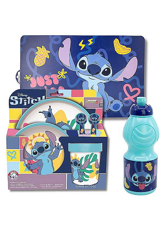 Make breakfast a fun and exciting part of the day with this adorable Breakfast Set! With its 7-Piece Dinner Set, Placemat, and a 400 ML Stitch Bottle, it's the perfect way to start the morning. The bright colours and playful Stitch designs will bring joy to every meal, making breakfast something your child will look forward to.Made from sturdy plastic, this set is durable and resistant to drops, so you don't have to worry about breakages like you would with ceramic tableware. Plus, the included Stitch Bottle is perfect for your little one to carry their favourite drink wherever they go-ideal for any Stitch fan!Encourage healthy eating and hydration while making mealtime a fun, enjoyable experience!Wash Before First Use , Hand Wash Only Dinner set dimensions approx. 25 x 25 x 8.5 cmBottle dimensions approx. 6.5 x 6.5 x 18 cm Place mat 43 x 28.1 x 0.1 CM )Place mat dimensions approx. 43 x 28.1 x 0.1 cm
