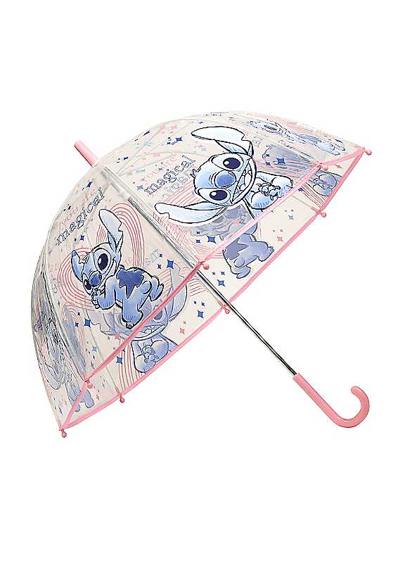 This transparent Stitch-printed Umbrella is the perfect rainy day companion for Stitch fans! With its 46 cm diameter, this umbrella is not just functional but also a delightful accessory that will make your child wish for rain every day. Crafted with care, it features a flared shape that excels at keeping water at bay, ensuring your child stays dry and comfortable. The long hook handle is designed for easy carrying and a secure grip, preventing slips when on-the-go. So why wait for the next downpour? Bring a touch of magic to rainy days with this Stitch-printed Transparent Umbrella. Rain or shine, they'll be ready to take on the world with this fantastic umbrella by their side.Brand: DisneyStitch printLong hook handleFlared shape umbrella | clear bubble umbrella, transparent umbrella, transparent plastic umbrella, dome shape umbrella