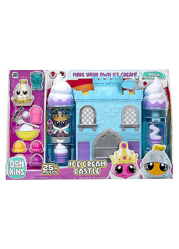 Delicious adventures await at the DohKins Ice Cream Castle! This fun play pack features our Never-Dry Dough that always stays soft, is gluten-free, and smells great - perfect for sculpting and squishing. Use the included character moulds and accessories to create your knight and princess characters, or shape the dough into anything you can think of!The whimsical world of DohKins introduces fun, hands-on play that helps children express themselves with imagination and inspiration. At the same time, kids can build their fine motor skills with tactile play that keeps them entertained for hours.Build your own dough world with DohKins as you follow along with the animated series on MGA's YouTube channel. Make It! Mould It! Shape It! It's your creation!Age suitability: 3+ years