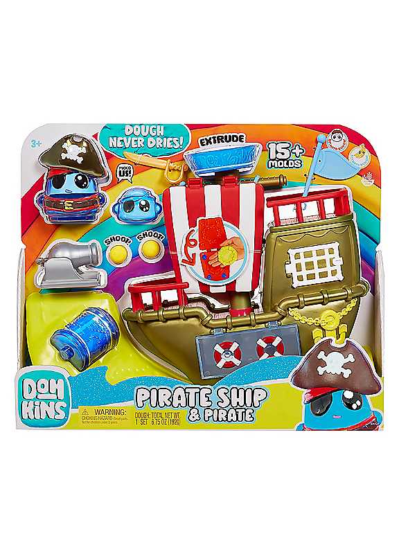 Sail the high seas with the DohKins Pirate Ship! This fun play pack features our Never-Dry Dough that always stays soft, is gluten-free, and smells great - perfect for sculpting and squishing. Use the included character moulds and accessories to create your pirate characters, or shape the dough into anything you can think of!The whimsical world of DohKins introduces fun, hands-on play that helps children express themselves with imagination and inspiration. At the same time, kids can build their fine motor skills with tactile play that keeps them entertained for hours.Build your own dough world with DohKins as you follow along with the animated series on MGA's YouTube channel. Make It! Mould It! Shape It! It's your creation!Age suitability: 3+ years