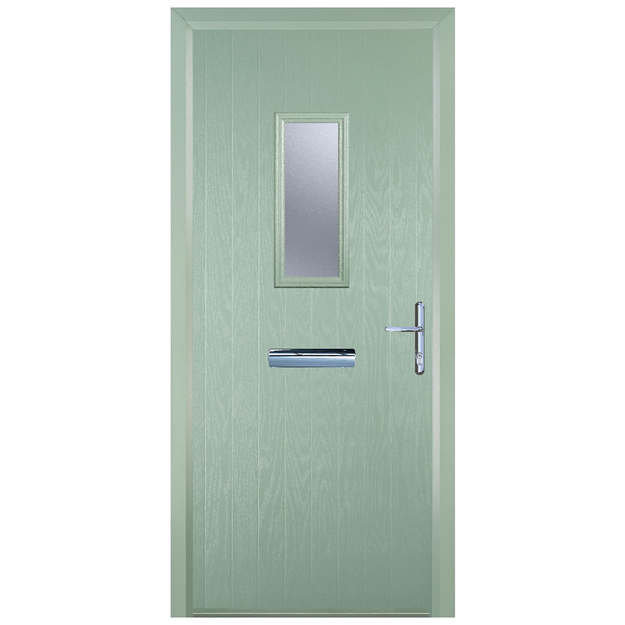 Door-Stop 1 Square Chartwell Green Left Hand GRP Composite Door with Colour-Matched Frame - 920 x 2100mm - Door-Stop 1 Square Chartwell Green Left Hand Composite Door is designed to elevate both style and functionality within your home. This door combines minimal maintenance with durable construction for lasting performance. With its elegant design, this door adds a touch of sophistication to any entryway. The soft, muted green colour evokes a sense of tranquility and nostalgia, creating a welcoming atmosphere for your home. This door offers exceptional strength, stability, and security. Easy to install and its smooth surface is easy to clean, allowing you to enjoy its pristine appearance with minimal effort. Supplied with a colour-matched frame.