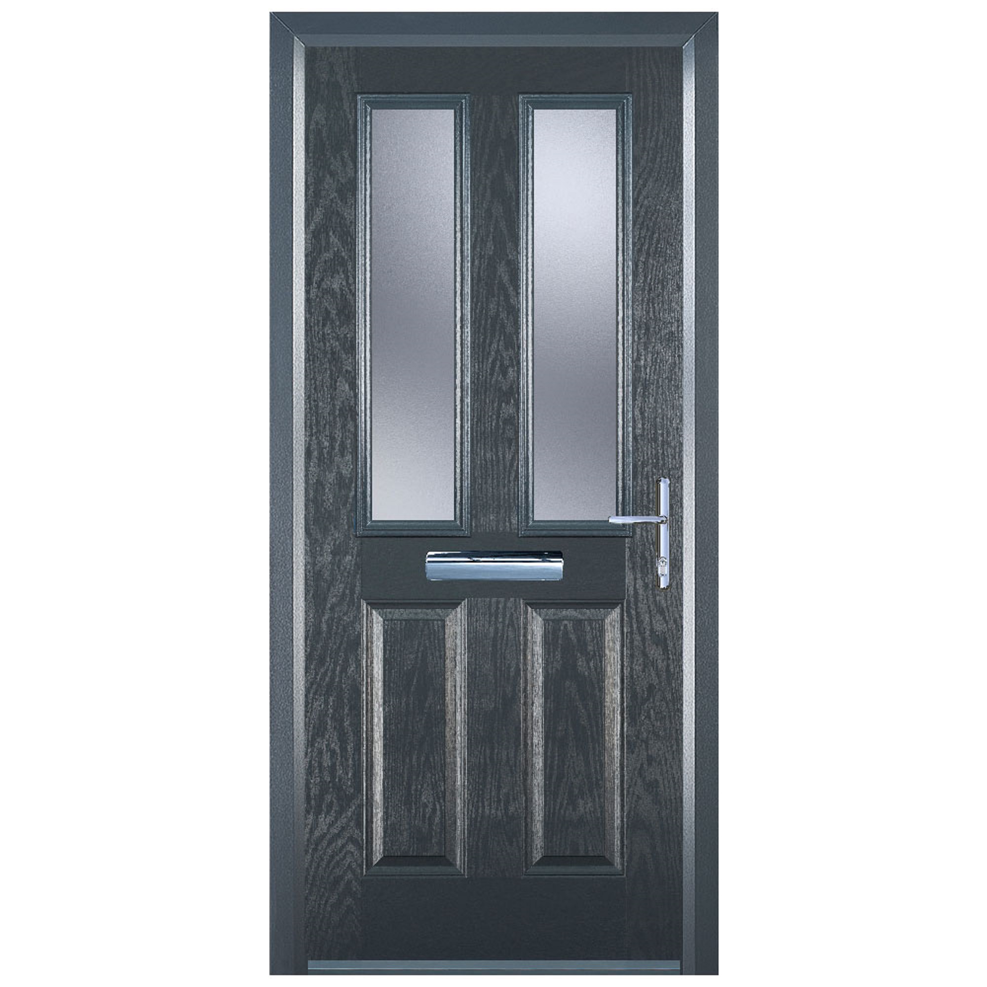 Door-Stop 2 Panel 2 Square Anthracite Grey Left Hand GRP Composite Door with Stippolyte Glass & Colour-Matched Frame - 840 x 2100mm