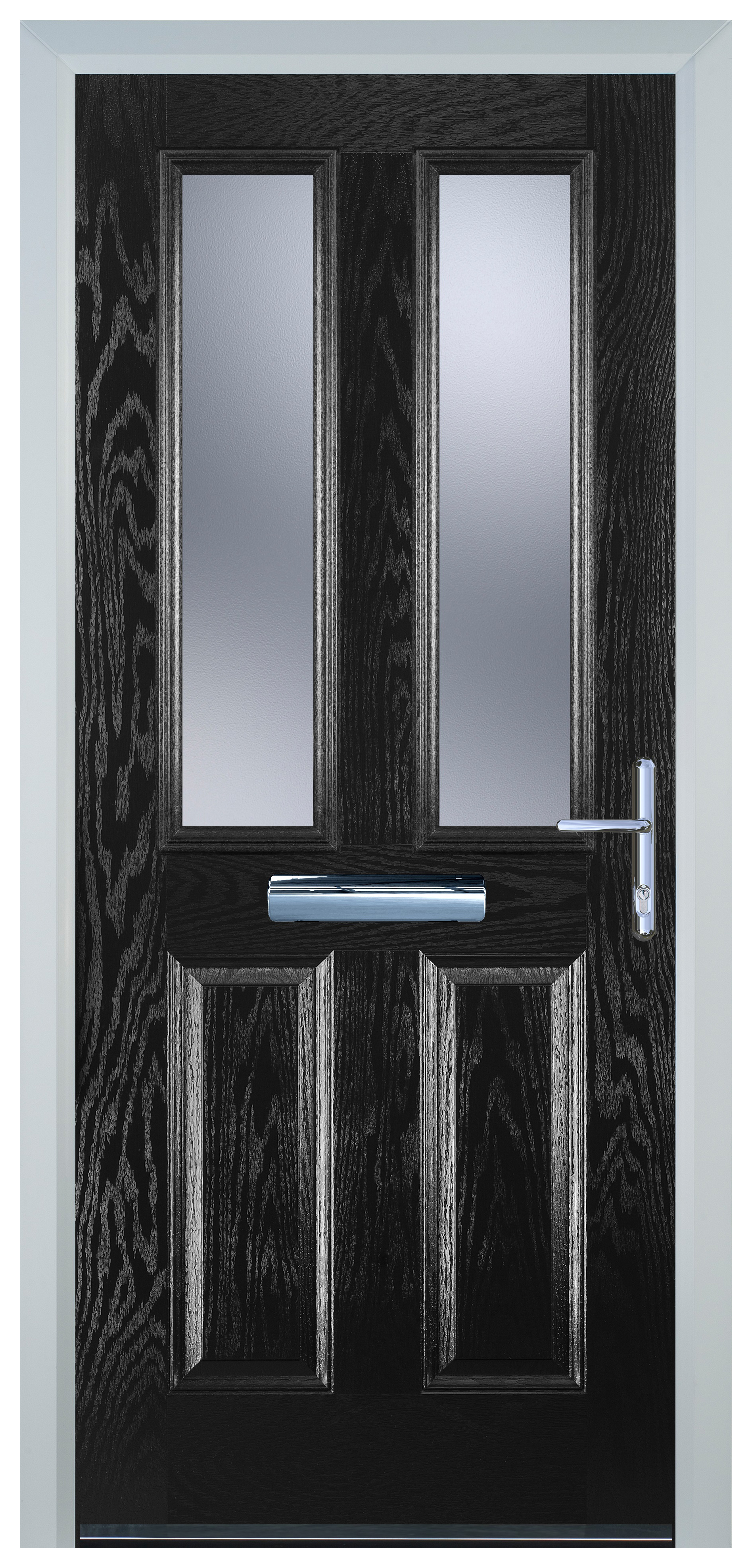 Door-Stop 2 Panel 2 Square Black Left Hand GRP Composite Door with Stippolyte Glass - 840 x 2100mm - Door-Stop 2 Panel 2 Square Black Left Hand Composite Door is designed to elevate both style and functionality within your home. This door combines minimal maintenance with durable construction for lasting performance. With its elegant design, this door adds a touch of sophistication to any entryway. The sleek black colour exudes confidence and style, making a bold statement that complements both traditional and contemporary homes alike. This door offers exceptional strength, stability, and security. Easy to install and its smooth surface is easy to clean, allowing you to enjoy its pristine appearance with minimal effort.