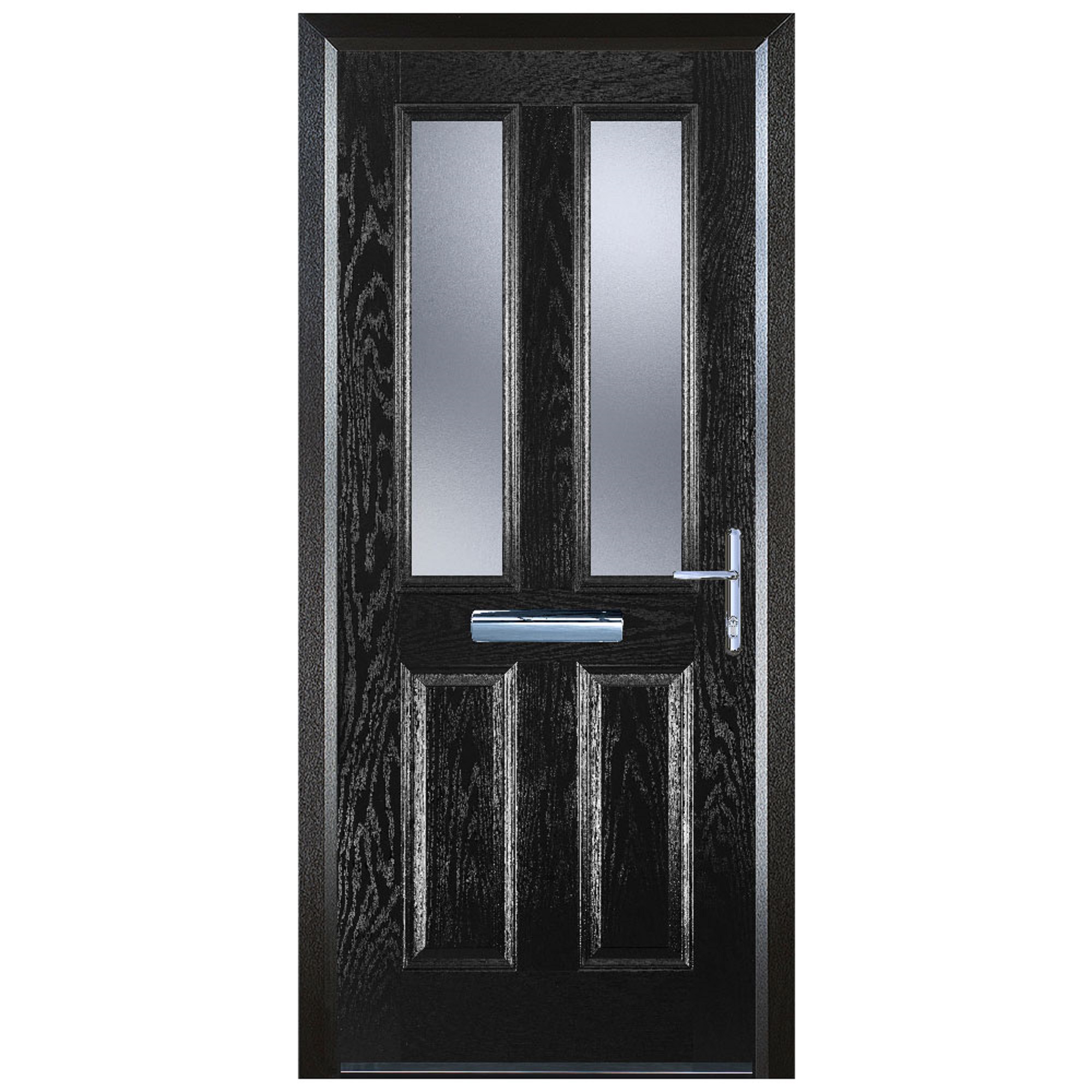 Door-Stop 2 Panel 2 Square Black Left Hand GRP Composite Door with Stippolyte Glass & Colour-Matched Frame - 920 x 2100mm - Door-Stop 2 Panel 2 Square Black Left Hand Composite Door is designed to elevate both style and functionality within your home. This door combines minimal maintenance with durable construction for lasting performance. With its elegant design, this door adds a touch of sophistication to any entryway. The sleek black colour exudes confidence and style, making a bold statement that complements both traditional and contemporary homes alike. This door offers exceptional strength, stability, and security. Easy to install and its smooth surface is easy to clean, allowing you to enjoy its pristine appearance with minimal effort. Supplied with a colour-matched frame.