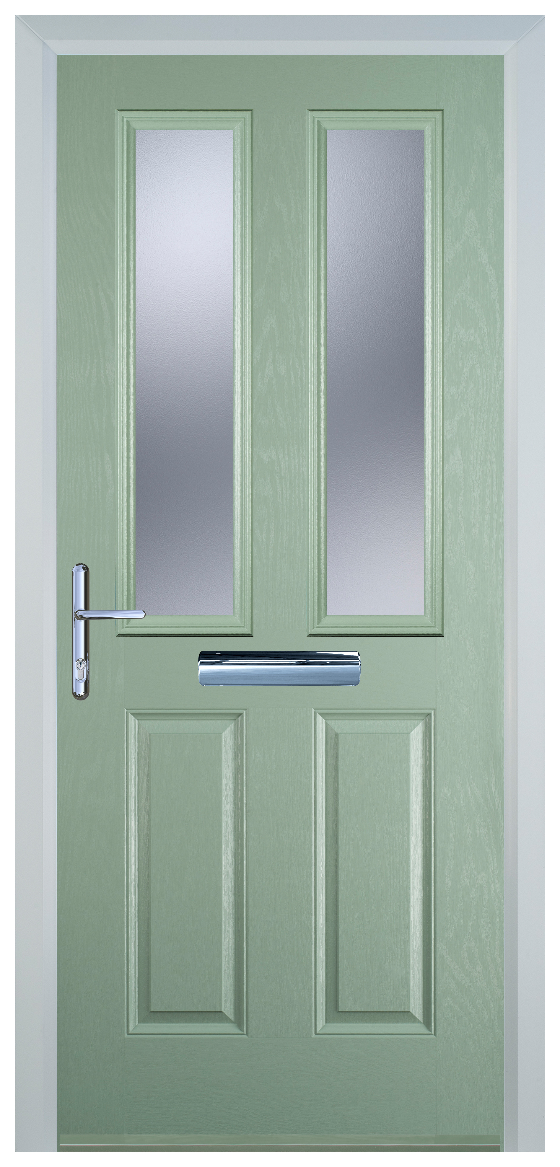 Door-Stop 2 Panel 2 Square Chartwell Green Right Hand GRP Composite Door with Stippolyte Glass - 920 x 2100mm