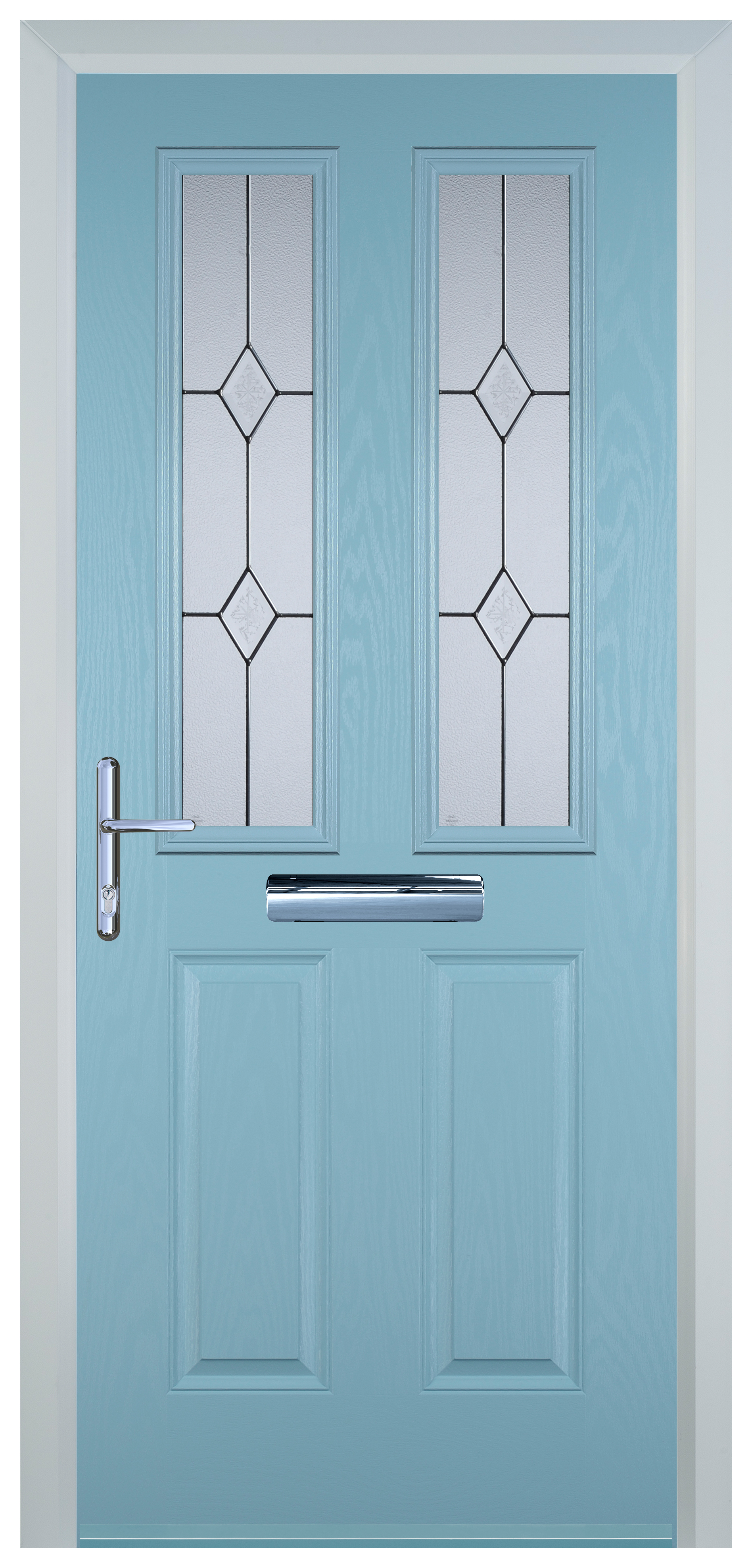 Door-Stop 2 Panel 2 Square Duck Egg Blue Right Hand GRP Composite Door - 920 x 2100mm - Door-Stop 2 Panel 2 Square Duck Egg Blue Right Hand Composite Door is designed to elevate both style and functionality within your home. This door combines minimal maintenance with durable construction for lasting performance. With its elegant design, this door adds a touch of sophistication to any entryway. The soft duck egg Blue colour evokes a sense of serenity and nostalgia, creating a welcoming atmosphere for your home. This door offers exceptional strength, stability, and security. Easy to install and its smooth surface is easy to clean, allowing you to enjoy its pristine appearance with minimal effort.