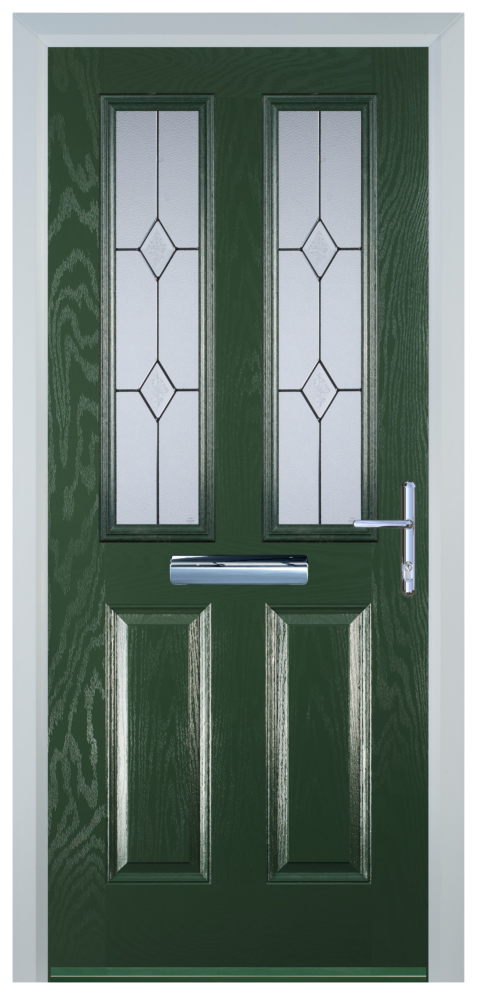 Door-Stop 2 Panel 2 Square Green Left Hand GRP Composite Door - 920 x 2100mm