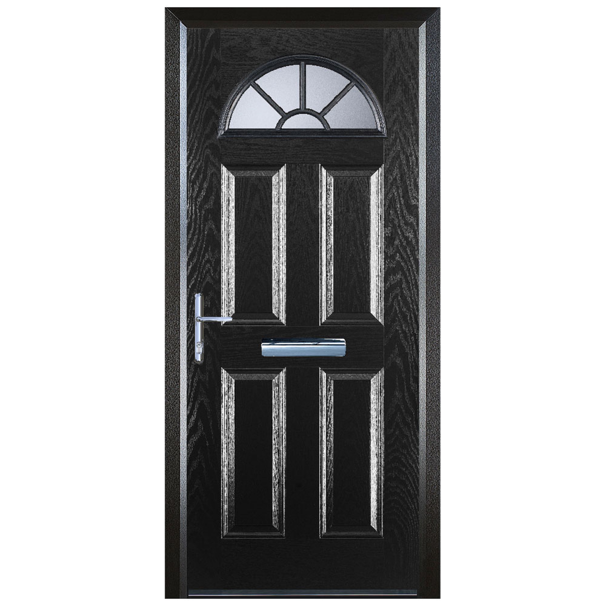 Door-Stop 4 Panel Sunburst Black Right Hand GRP Composite Door with Colour-Matched Frame - 920 x 2100mm