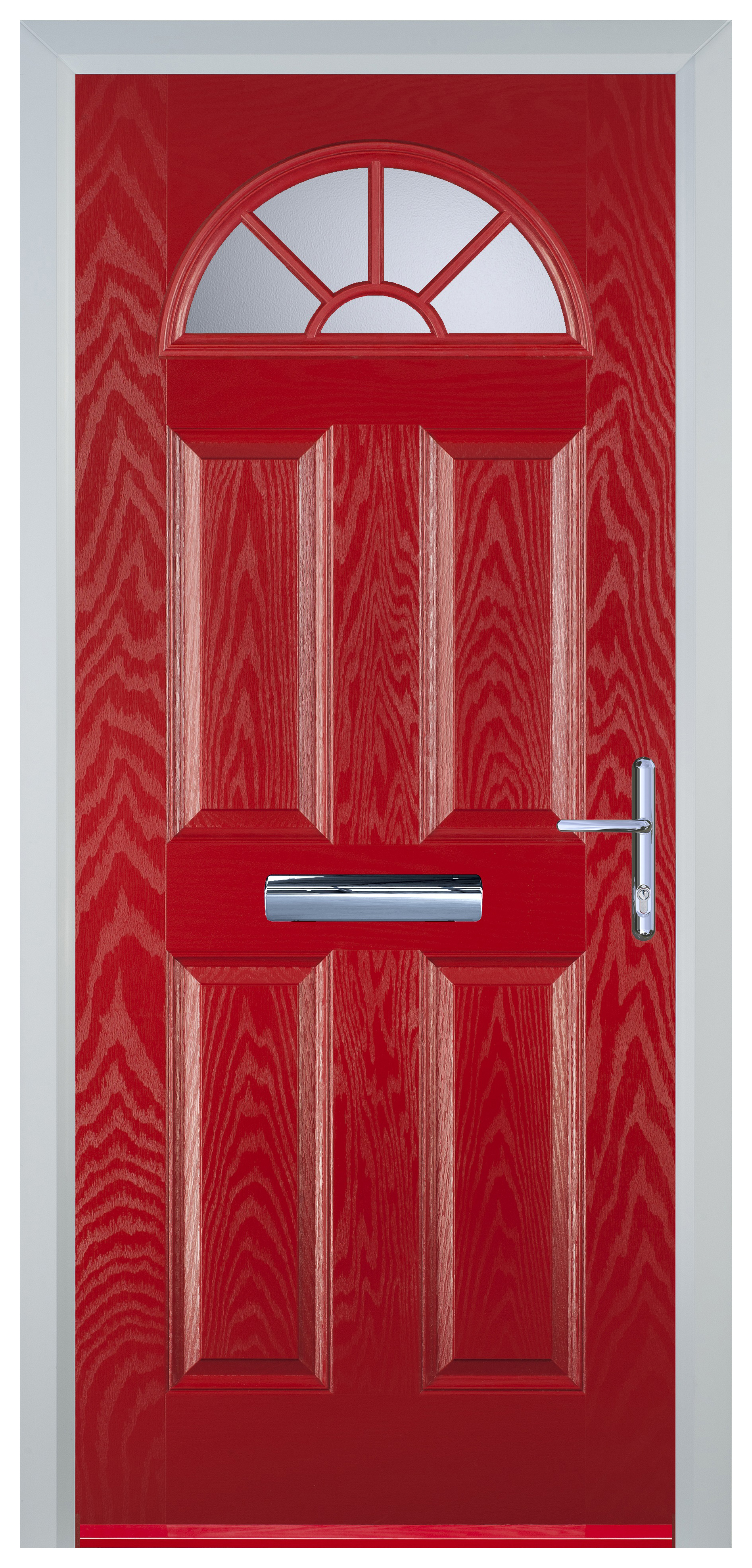 Door-Stop 4 Panel Sunburst Red Left Hand GRP Composite Door - 840 x 2100mm
