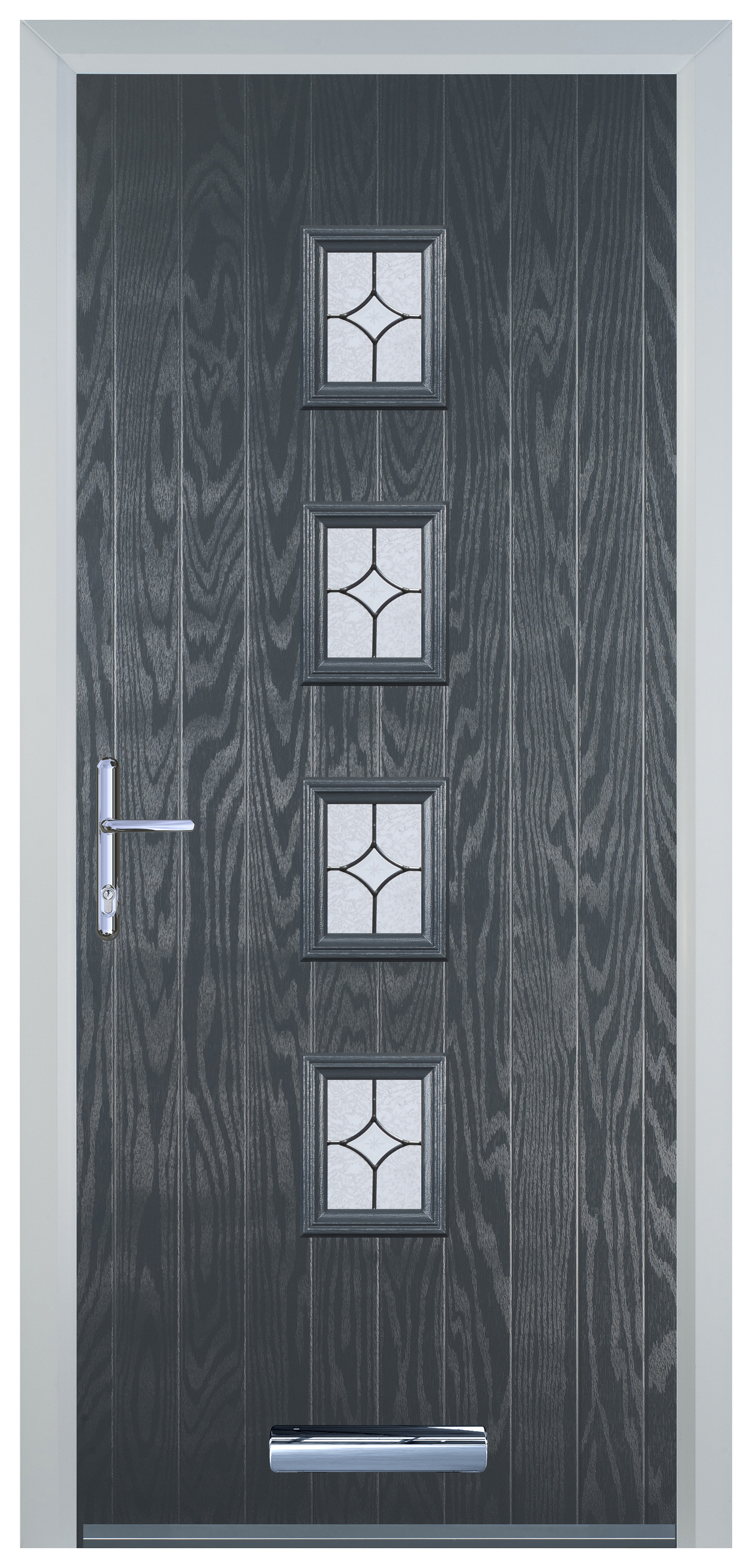 Door-Stop 4 Square Anthracite Grey Right Hand GRP Composite Door with Flair Glass - 920 x 2100mm - Door-Stop 4 Square Anthracite Grey Right Hand Composite Door is designed to elevate both style and functionality within your home. This door combines minimal maintenance with durable construction for lasting performance. With its elegant design, this door adds a touch of sophistication to any entryway. The sleek anthracite grey colour adds a bold and stylish statement, complementing a variety of styles with its versatile appeal. This door offers exceptional strength, stability, and security. Easy to install and its smooth surface is easy to clean, allowing you to enjoy its pristine appearance with minimal effort.