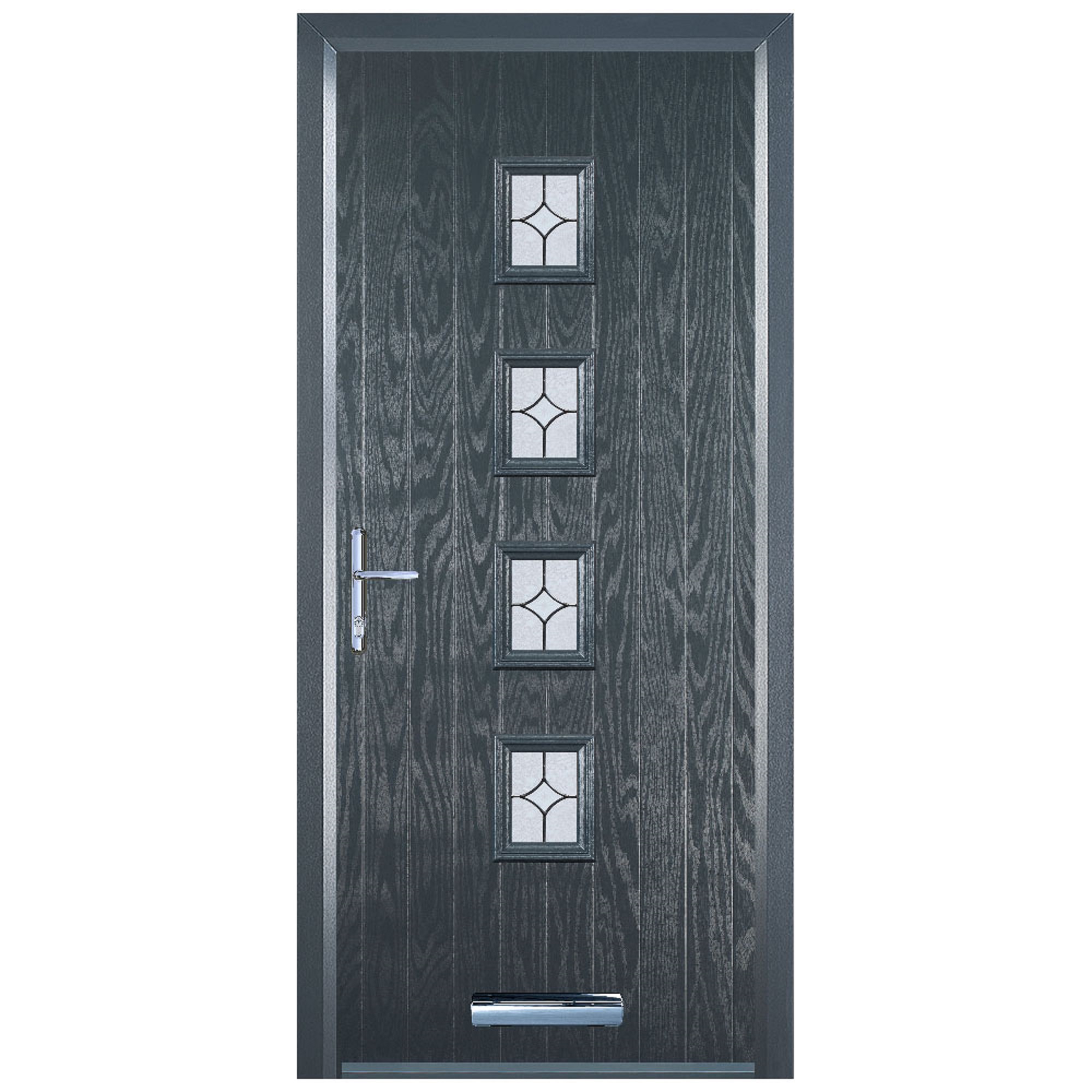 Door-Stop 4 Square Anthracite Grey Right Hand GRP Composite Door with Flair Glass & Colour-Matched Frame - 840 x 2100mm - Door-Stop 4 Square Anthracite Grey Right Hand Composite Door is designed to elevate both style and functionality within your home. This door combines minimal maintenance with durable construction for lasting performance. With its elegant design, this door adds a touch of sophistication to any entryway. The sleek anthracite grey colour adds a bold and stylish statement, complementing a variety of styles with its versatile appeal. This door offers exceptional strength, stability, and security. Easy to install and its smooth surface is easy to clean, allowing you to enjoy its pristine appearance with minimal effort. Supplied with a colour-matched frame.