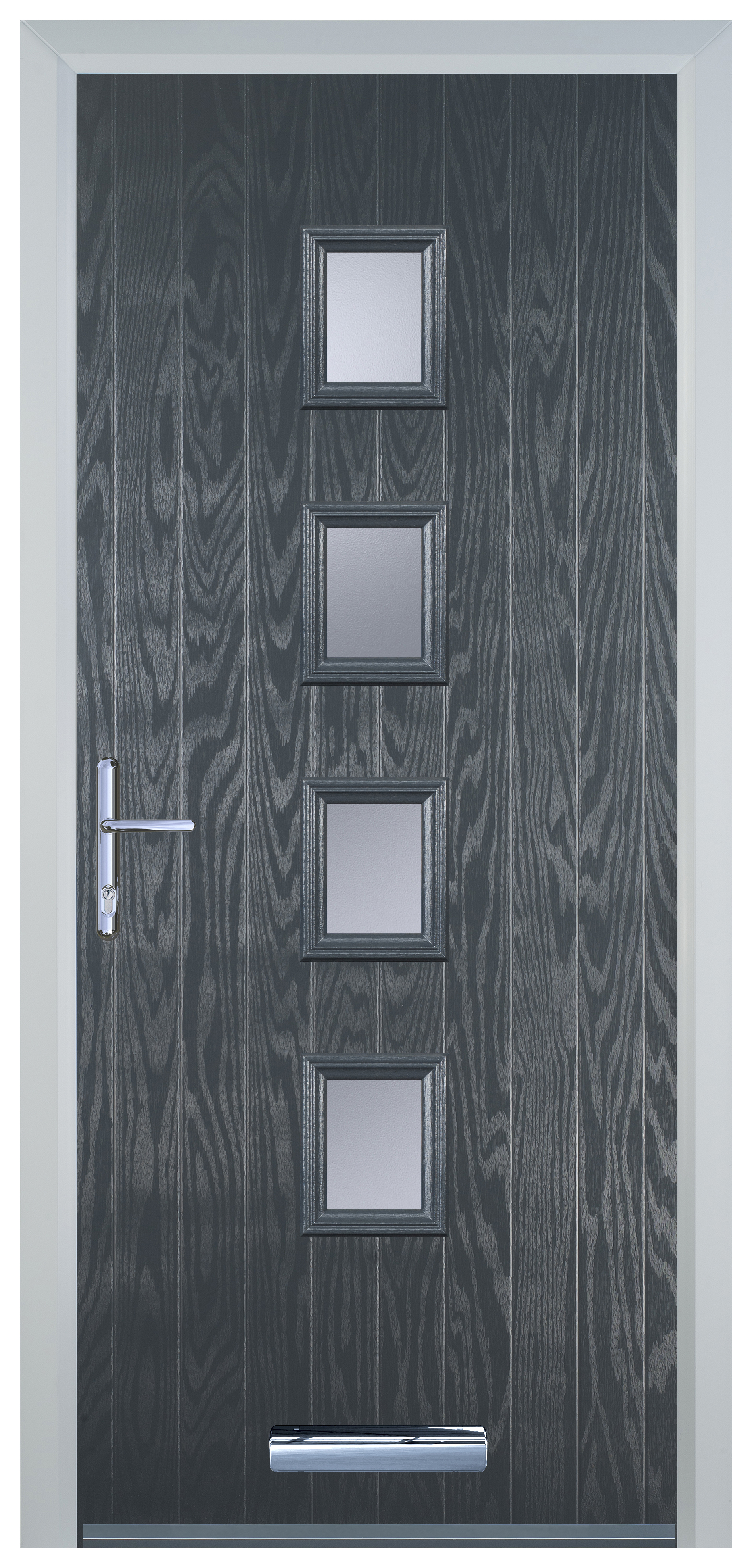 Door-Stop 4 Square Anthracite Grey Right Hand GRP Composite Door with Stippolyte Glass - 920 x 2100mm