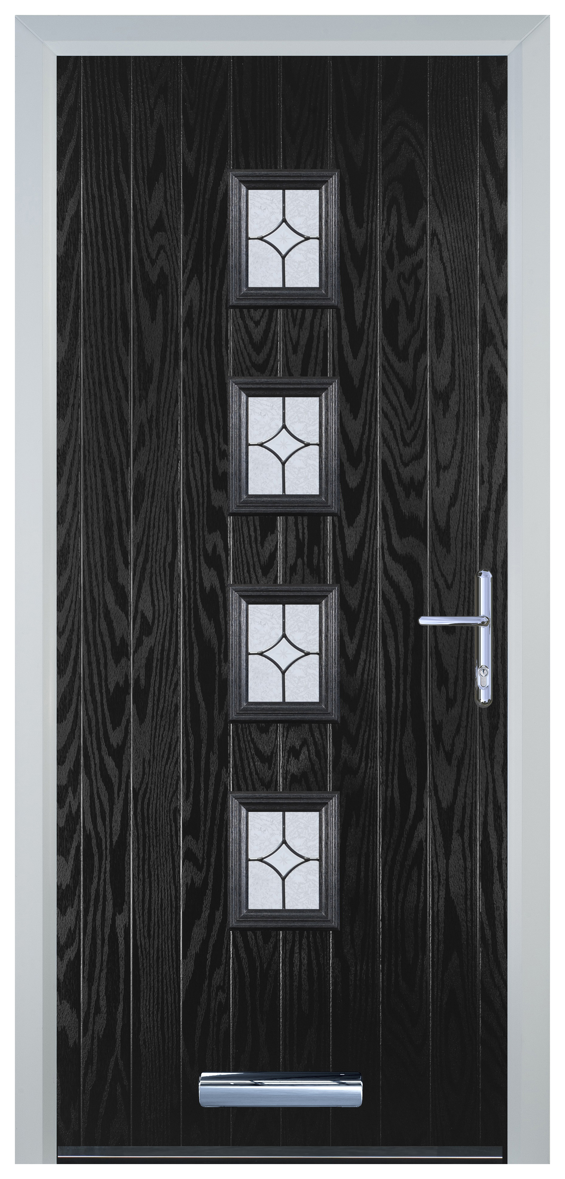 Door-Stop 4 Square Black Left Hand GRP Composite Door with Flair Glass - 920 x 2100mm - Door-Stop 4 Square Black Left Hand Composite Door is designed to elevate both style and functionality within your home. This door combines minimal maintenance with durable construction for lasting performance. With its elegant design, this door adds a touch of sophistication to any entryway. The sleek black colour exudes confidence and style, making a bold statement that complements both traditional and contemporary homes alike. This door offers exceptional strength, stability, and security. Easy to install and its smooth surface is easy to clean, allowing you to enjoy its pristine appearance with minimal effort.