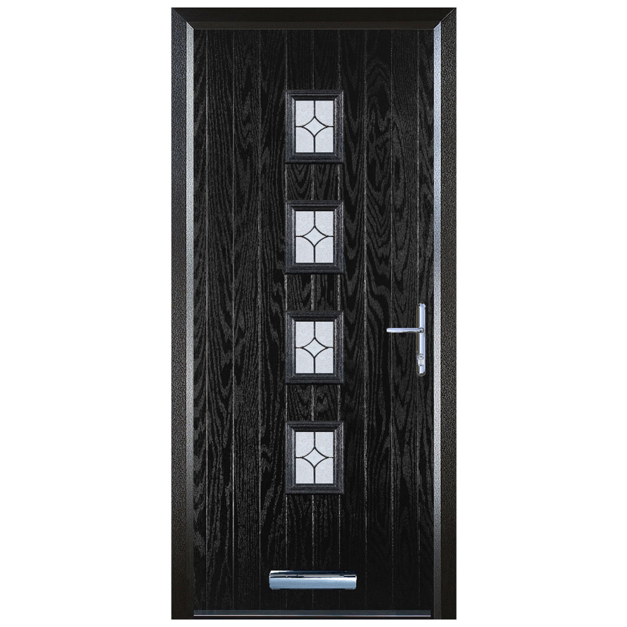 Door-Stop 4 Square Black Left Hand GRP Composite Door with Flair Glass & Colour-Matched Frame - 920 x 2100mm - Door-Stop 4 Square Black Left Hand Composite Door is designed to elevate both style and functionality within your home. This door combines minimal maintenance with durable construction for lasting performance. With its elegant design, this door adds a touch of sophistication to any entryway. The sleek black colour exudes confidence and style, making a bold statement that complements both traditional and contemporary homes alike. This door offers exceptional strength, stability, and security. Easy to install and its smooth surface is easy to clean, allowing you to enjoy its pristine appearance with minimal effort. Supplied with a colour-matched frame.