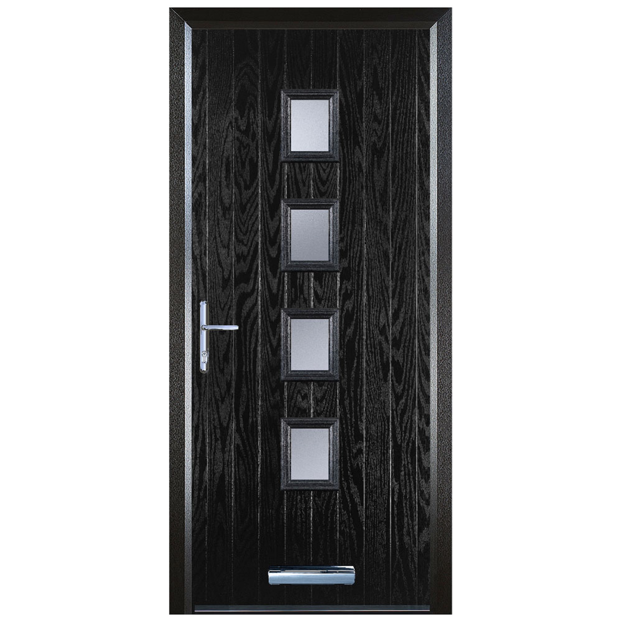 Door-Stop 4 Square Black Right Hand GRP Composite Door with Stippolyte Glass & Colour-Matched Frame - 920 x 2100mm