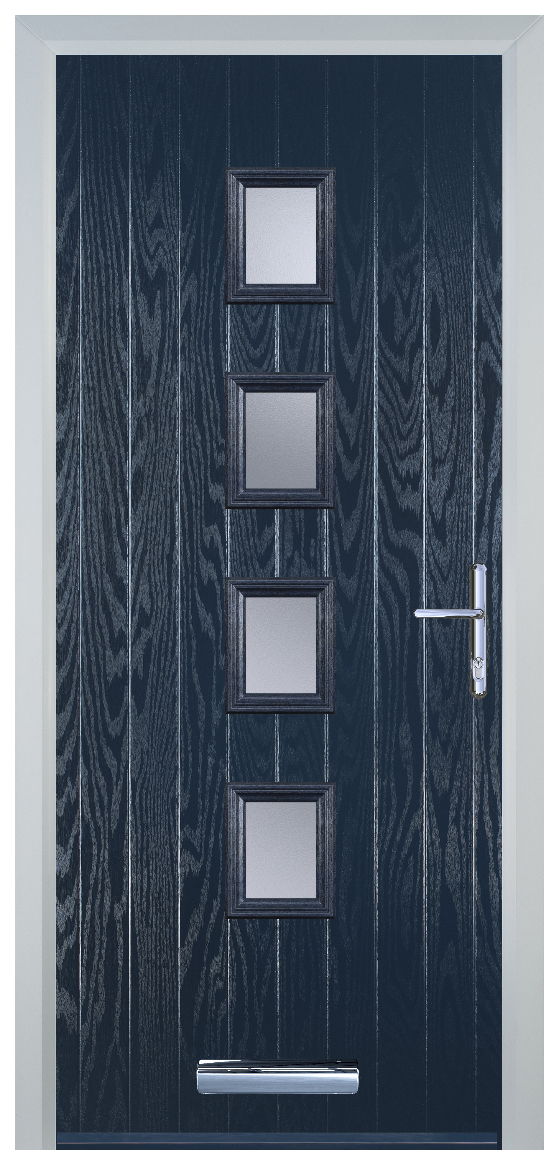 Door-Stop 4 Square Blue Left Hand GRP Composite Door with Stippolyte Glass - 840 x 2100mm - Door-Stop 4 Square Blue Left Hand Composite Door is designed to elevate both style and functionality within your home. This door combines minimal maintenance with durable construction for lasting performance. With its elegant design, this door adds a touch of sophistication to any entryway. The rich blue colour adds a touch of sophistication and serenity to your home's exterior, creating an inviting focal point. This door offers exceptional strength, stability, and security. Easy to install and its smooth surface is easy to clean, allowing you to enjoy its pristine appearance with minimal effort.