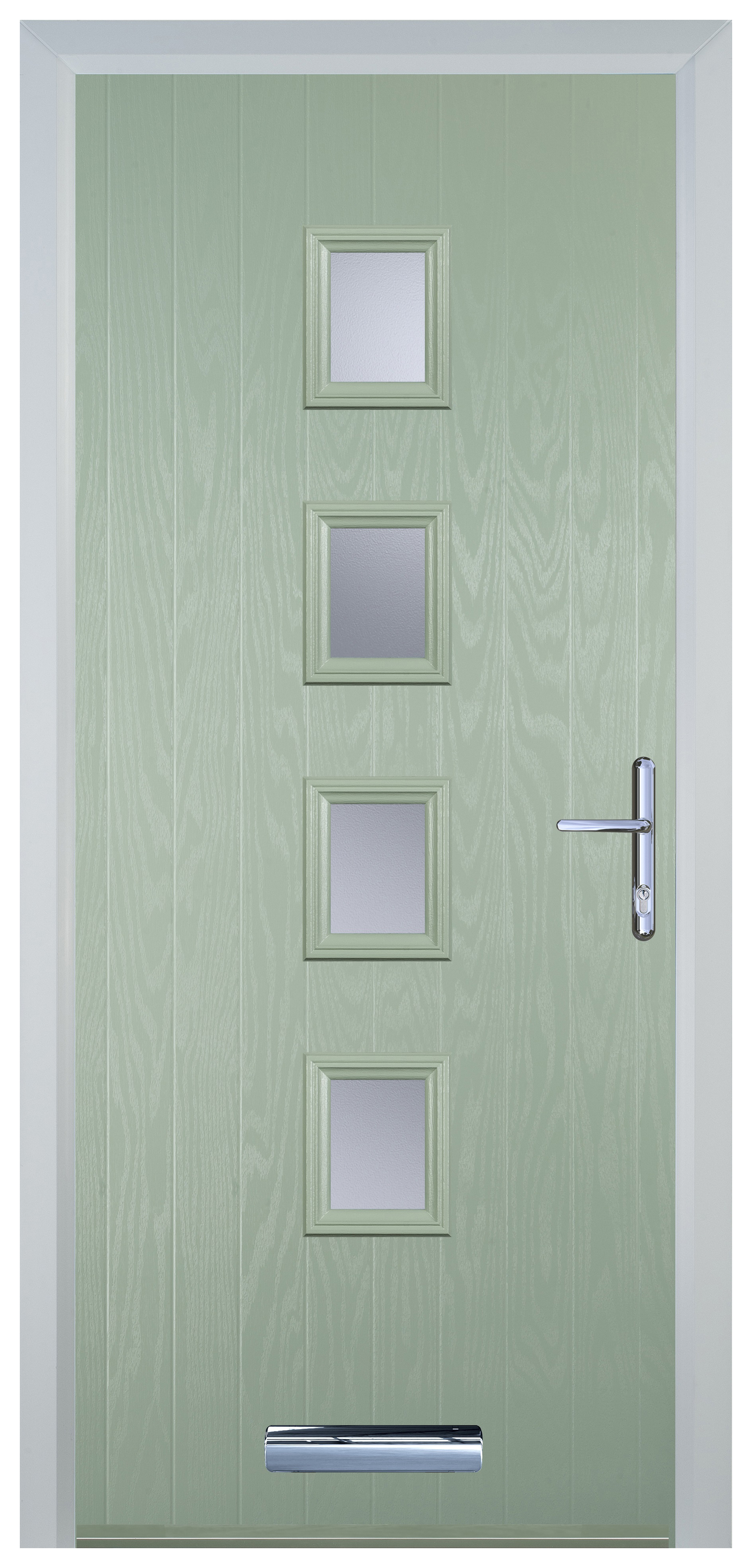 Door-Stop 4 Square Chartwell Green Left Hand GRP Composite Door with Stippolyte Glass - 920 x 2100mm
